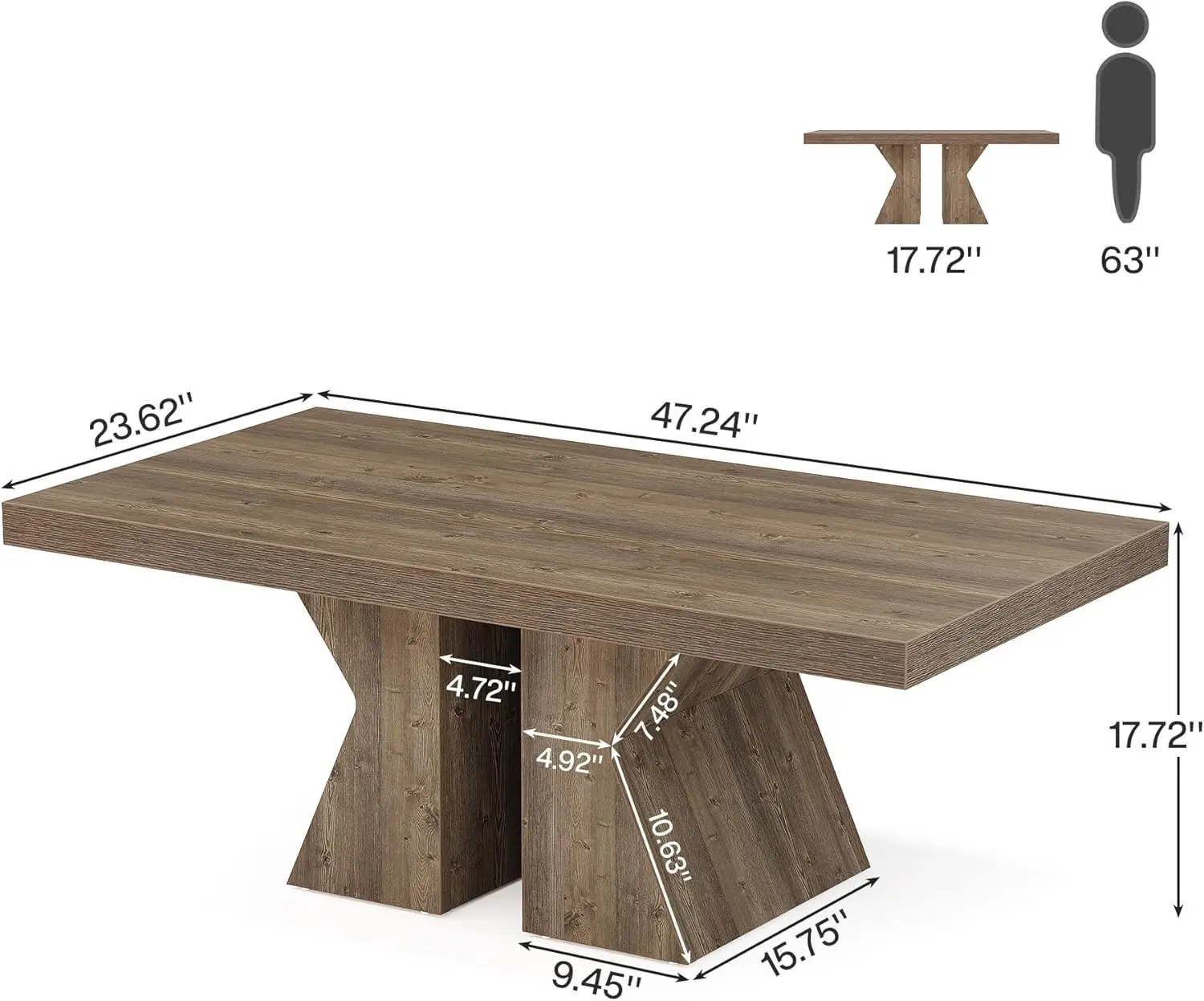 - Striking Design: Our table features a rectangular tabletop resting on a thick wooden base with balanced symmetry, showcasing a blend of simplicity and style. Its streamlined silhouette fits beautifully amidst any living room setting.