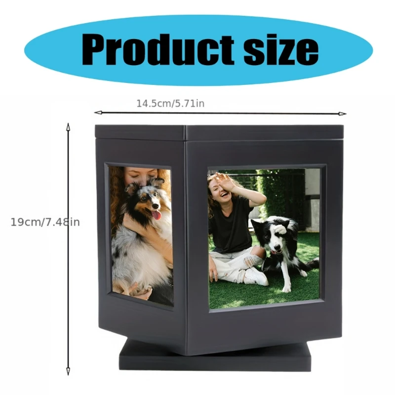 This multifunctional Cremation box features a rotating frame designings that allows you to display cherished photos or keepsakes, making it a great addition to any room.