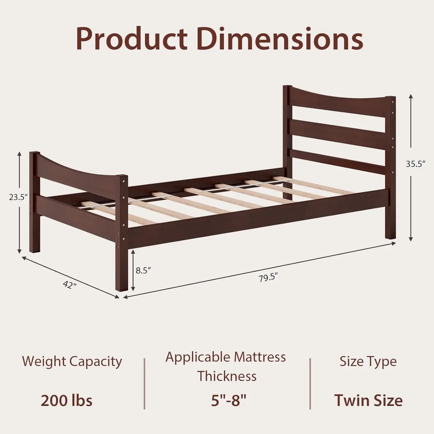 - 【Wood Frame with Strong Support】: The bed frame is made of premium pine wood, which is sturdy and durably. Coming with 8 bed slats, the bed can stand up the weight of mattress evenly to extend the life of it. The legs offer reliable stability and support, which ensures a 200 lbs load-bearing capacity.