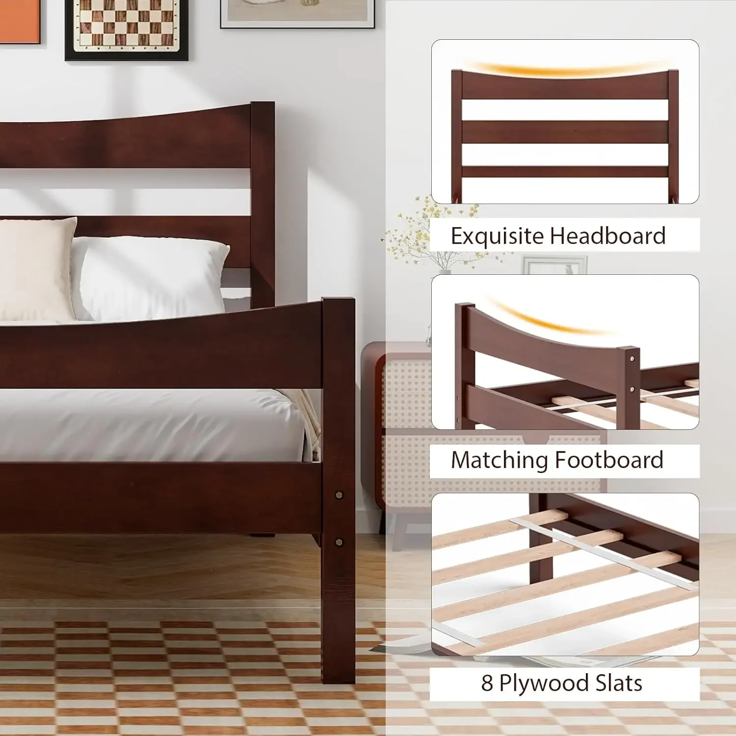 - 【Simple Style for Matching】: Our wood bed frame has simple and generous style which can be harmoniously matched with a variety of furniture in your home. And the twin size platform bed is suitable for many occasions such as children’s room, guest room and dormitory because of the compact and space-saving design.