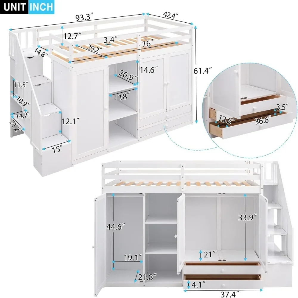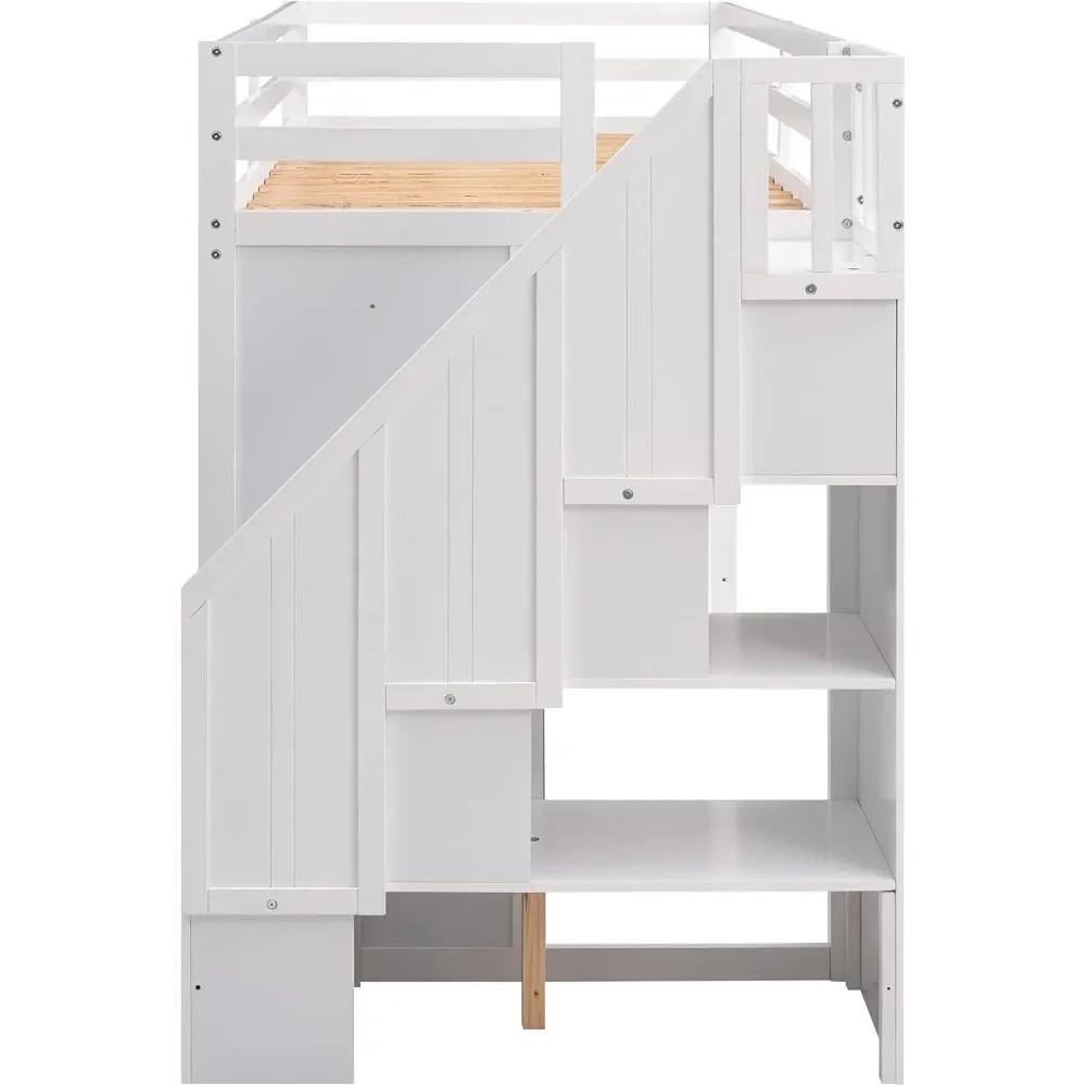 - 【Loft Bed with Staircase】The side of the ladders are equipped with efficient storage space. You can decide whether the stairs are placed on the left or right.