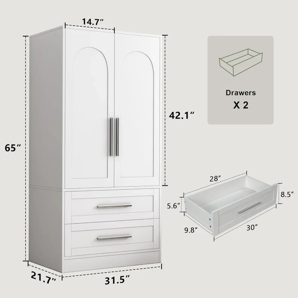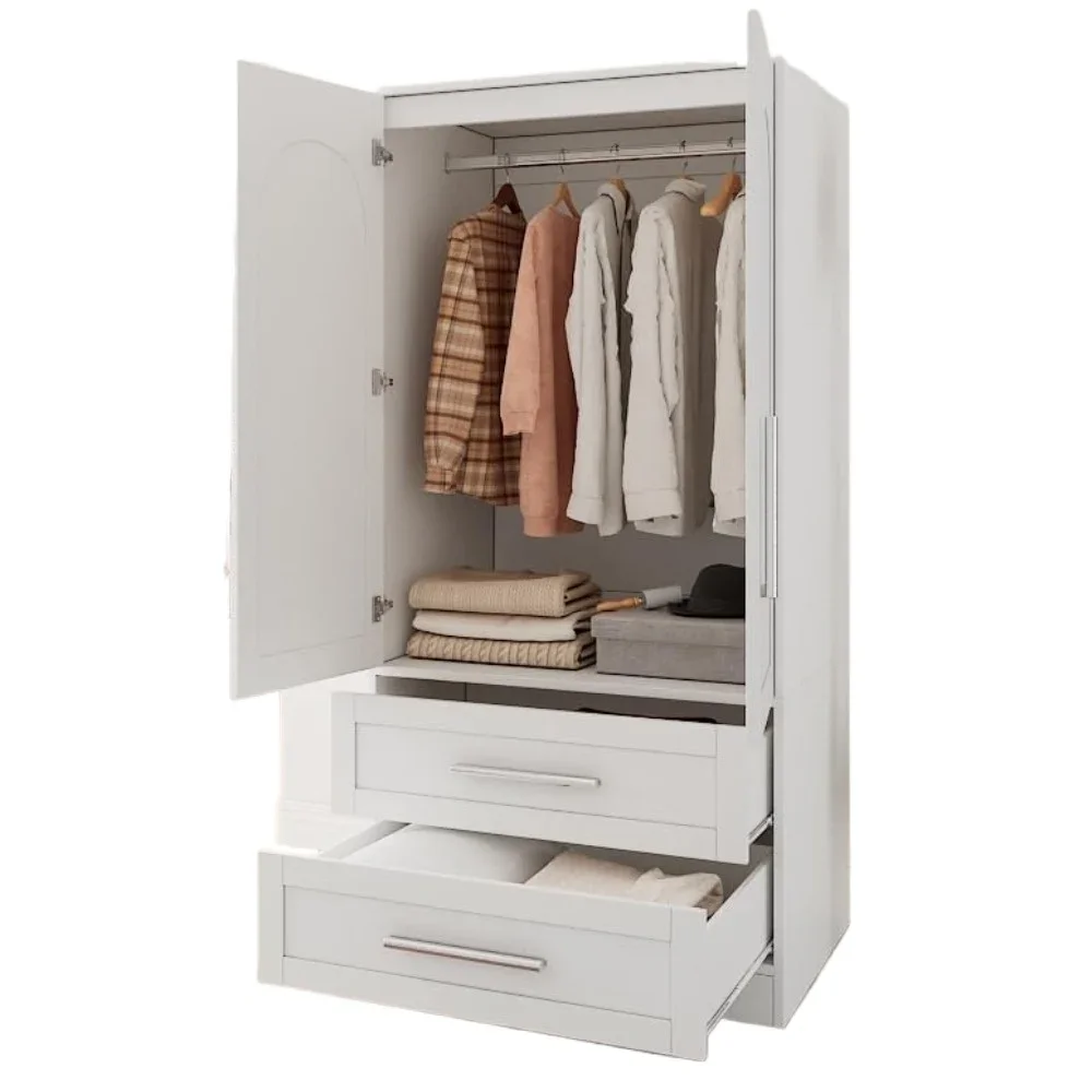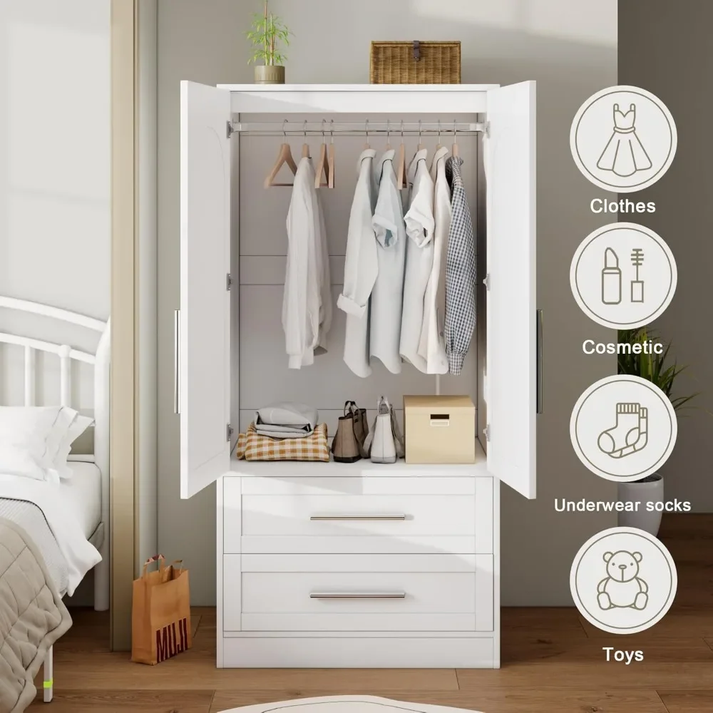 Wooden Armoire Wardrobe Closet with 2 Drawers, Clothing Storage Cabinet, Modern Bedroom Clothing Armoires, Wardrobe