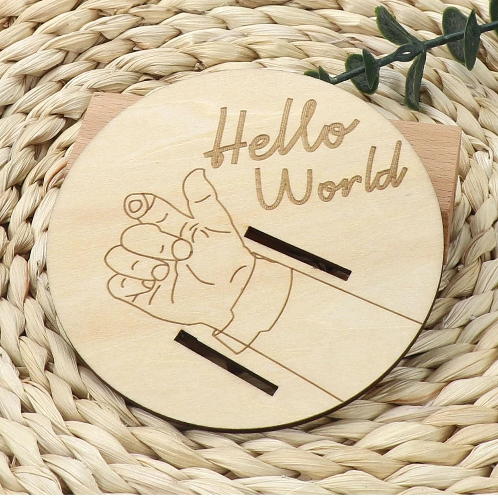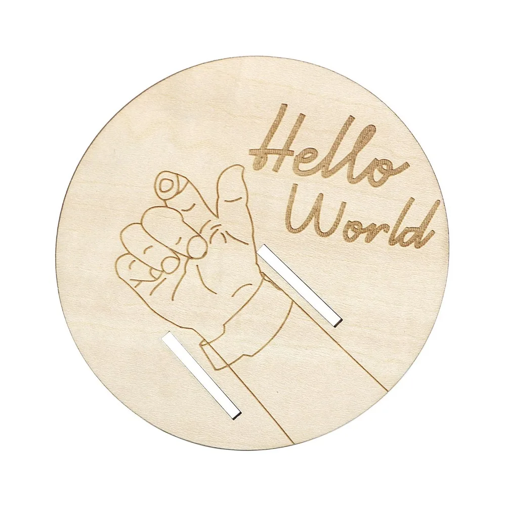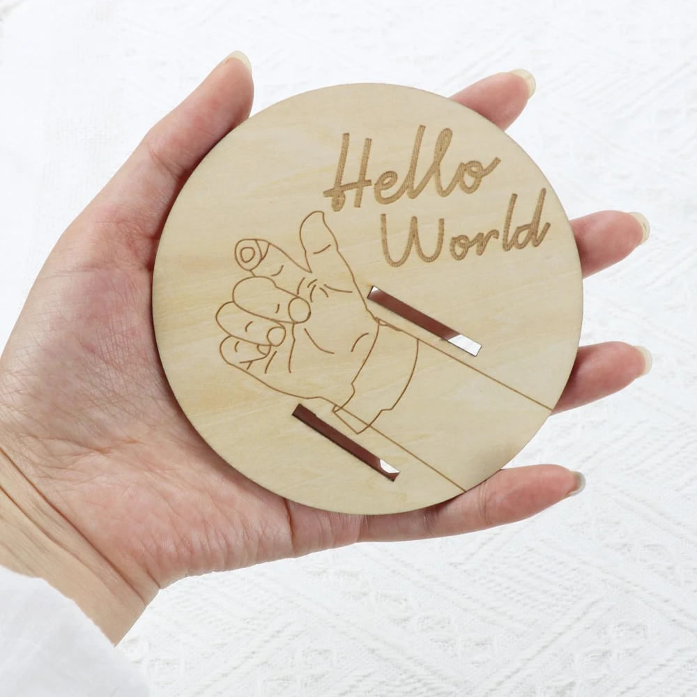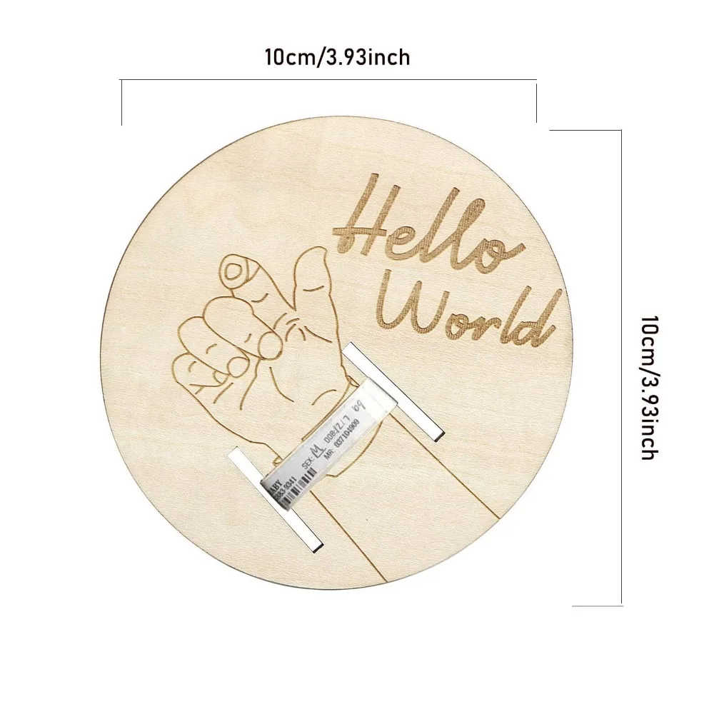 Wooden Baby Birth Bracelet Keepsake Plaque, Engraved Hello World Disc Birth Sign Gift for New Parents, Photography Accessories