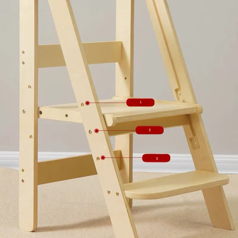 Wooden children’s ladder stool with three adjustable gears height adjustable solid wood children’s learning tower