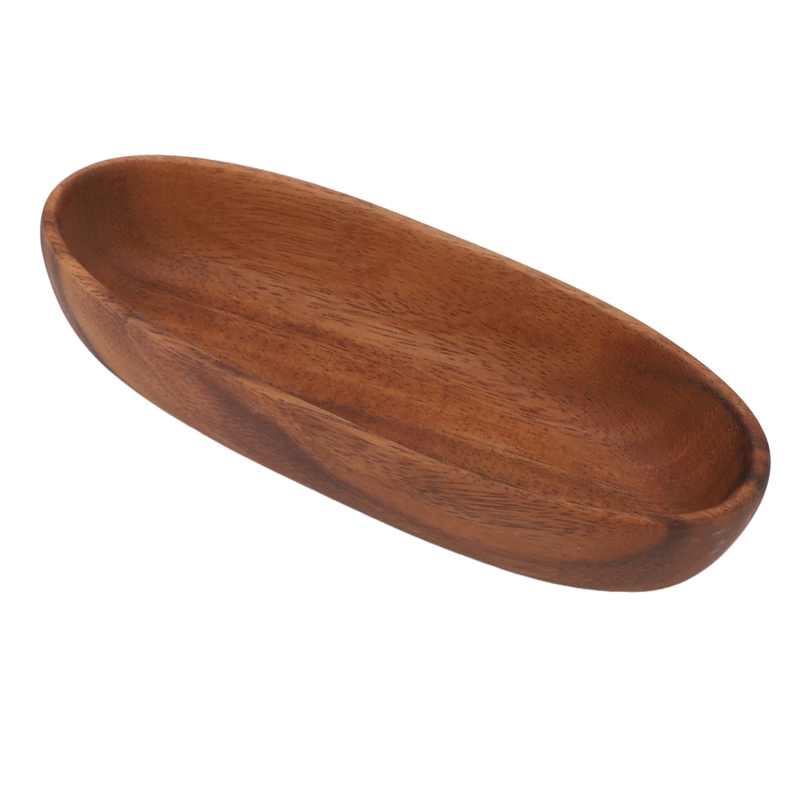 Wooden Salad Bowl Multipurpose Large Capacity Wooden Boat Shaped Bowl for Food Bread Fruits Snack Dessert