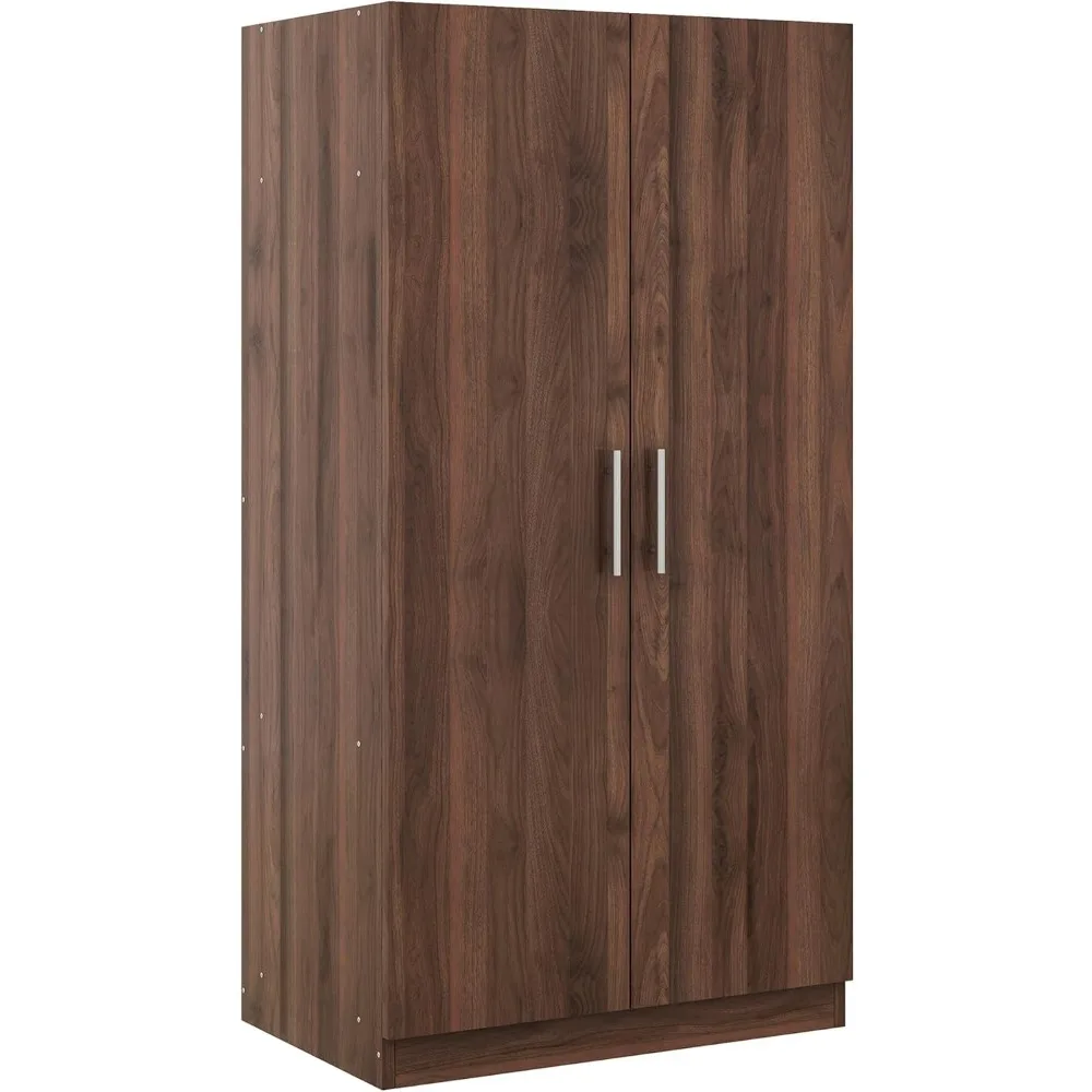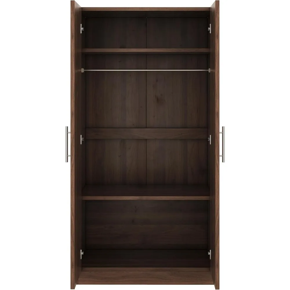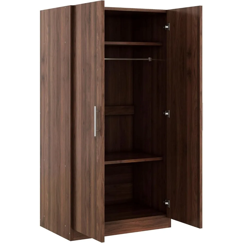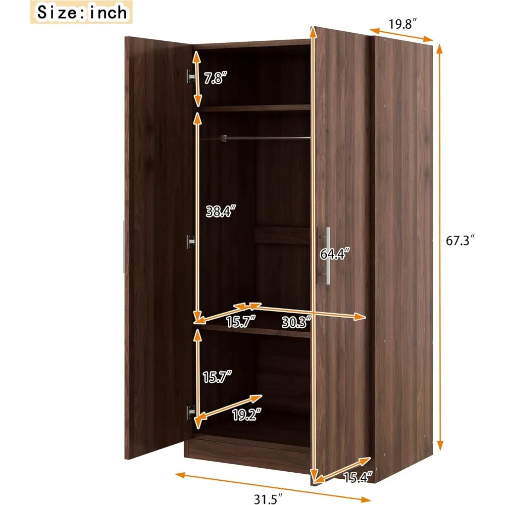 Wooden Wardrobe with 3 Storage Shelves, 2-Door Armoire with Large Storage Space, for Bedroom, Living Room, Brown