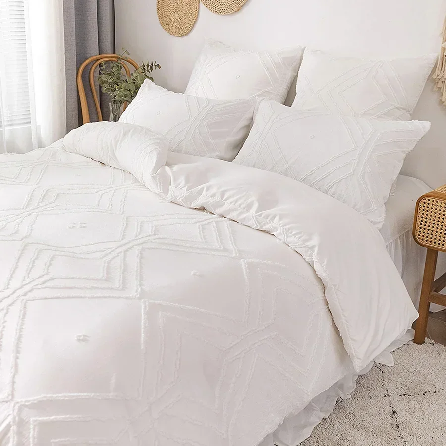 WOSTAR Summer white pinch pleat duvet cover 220x240cm luxury double bed quilt cover bedding set queen king size comforter cover