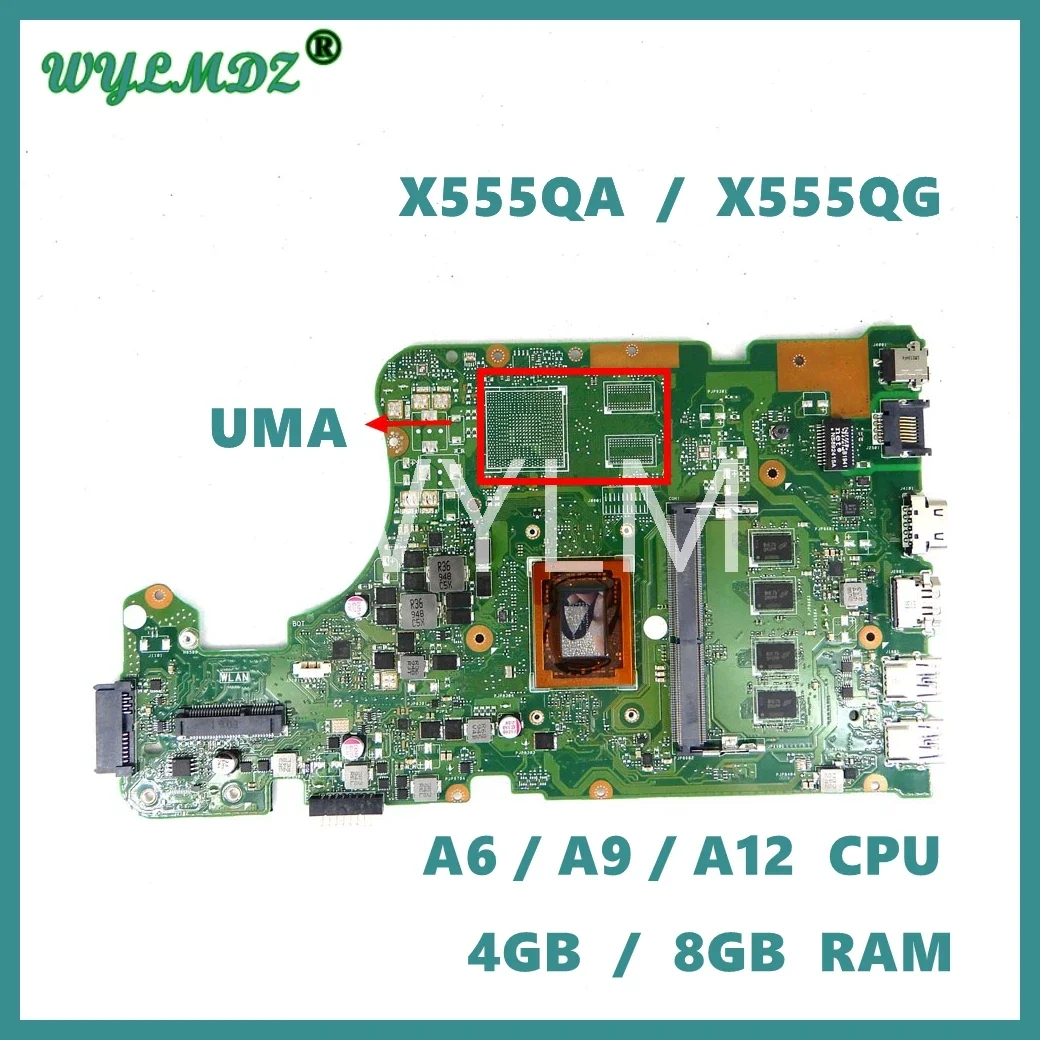 X555QG Mainboard For ASUS X555QA X555QG X555DA X555BA X555BP K555B A555B Laptop Motherboard A6/A9/A10/A12 CPU 4G/8G-RAM UMA/PM