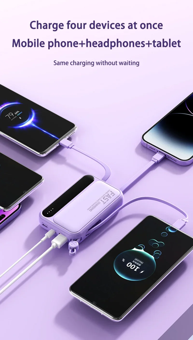 Xiaomi 100000mAh Large Capacity Power Bank Portable Fast Charging power bank with built-in 4 Cables Battery For IPhone Samsung