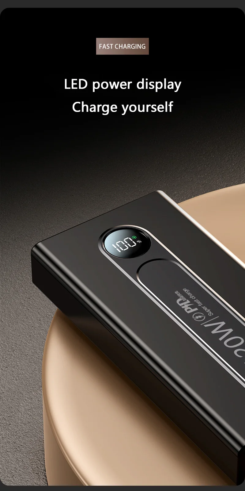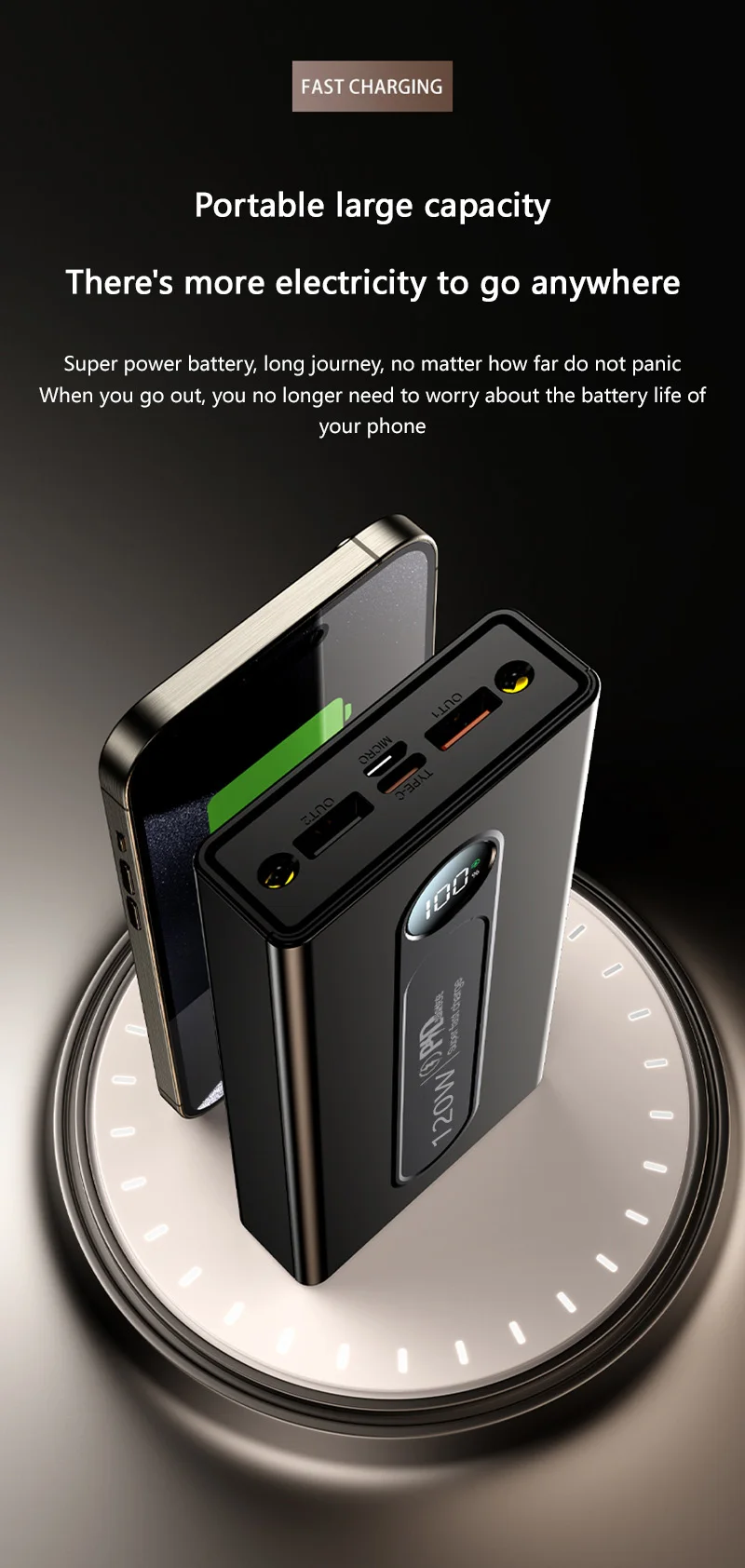 Product: 120W super fast charging power bank with built-in power cord