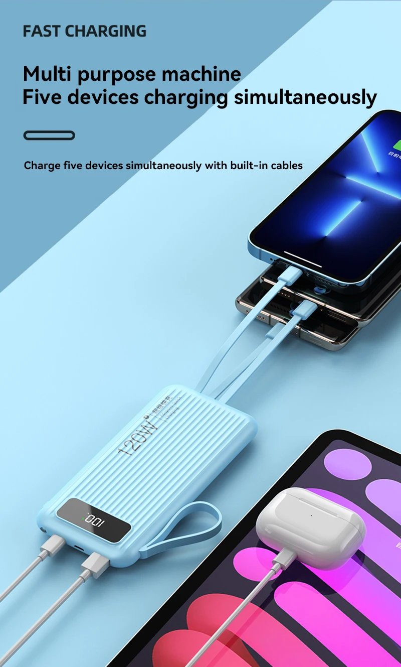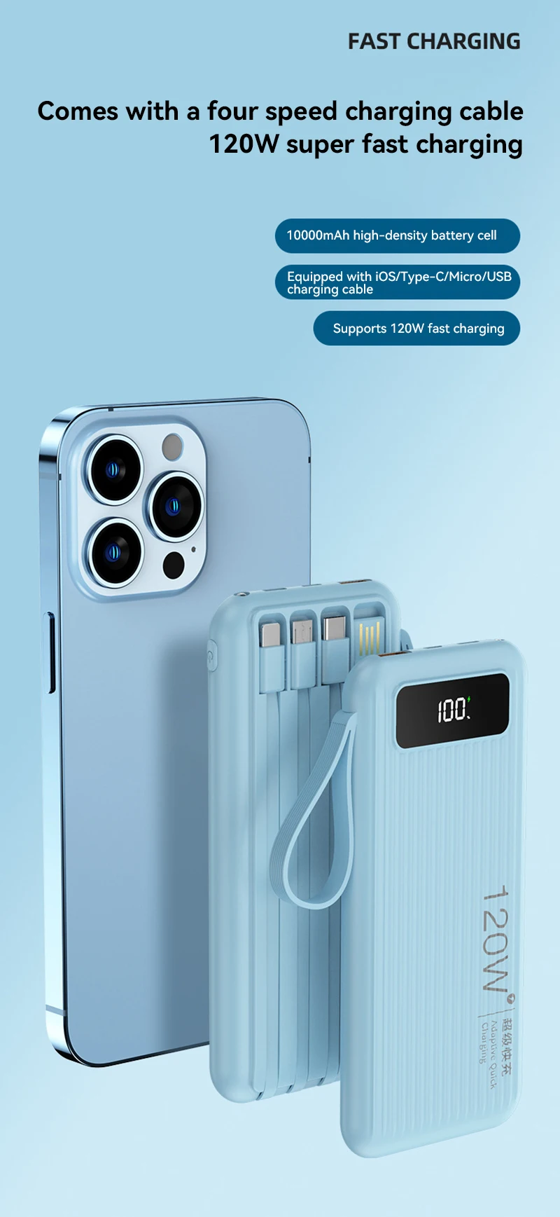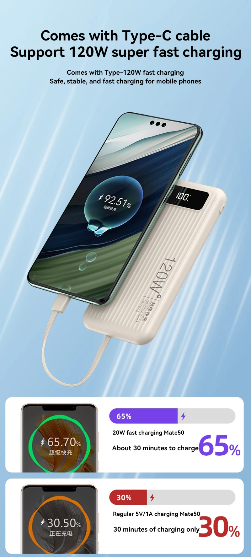 Xiaomi 120w Built-in Cable Super Fast Power Bank Capacity 20000mah Digital Display Portable External Battery For Iphone Huawei
