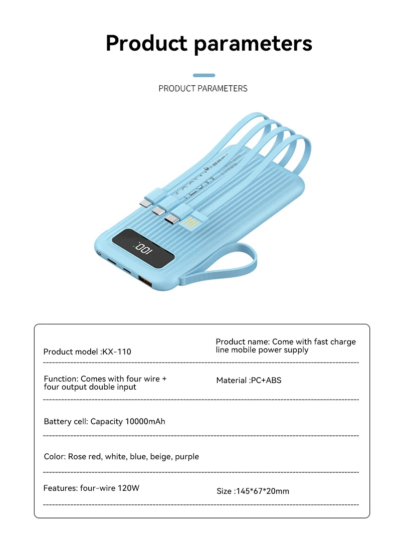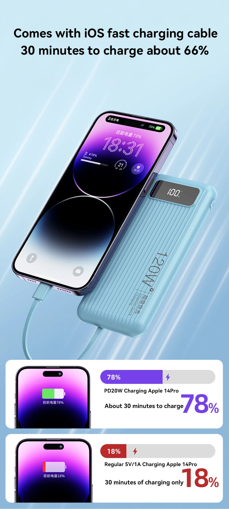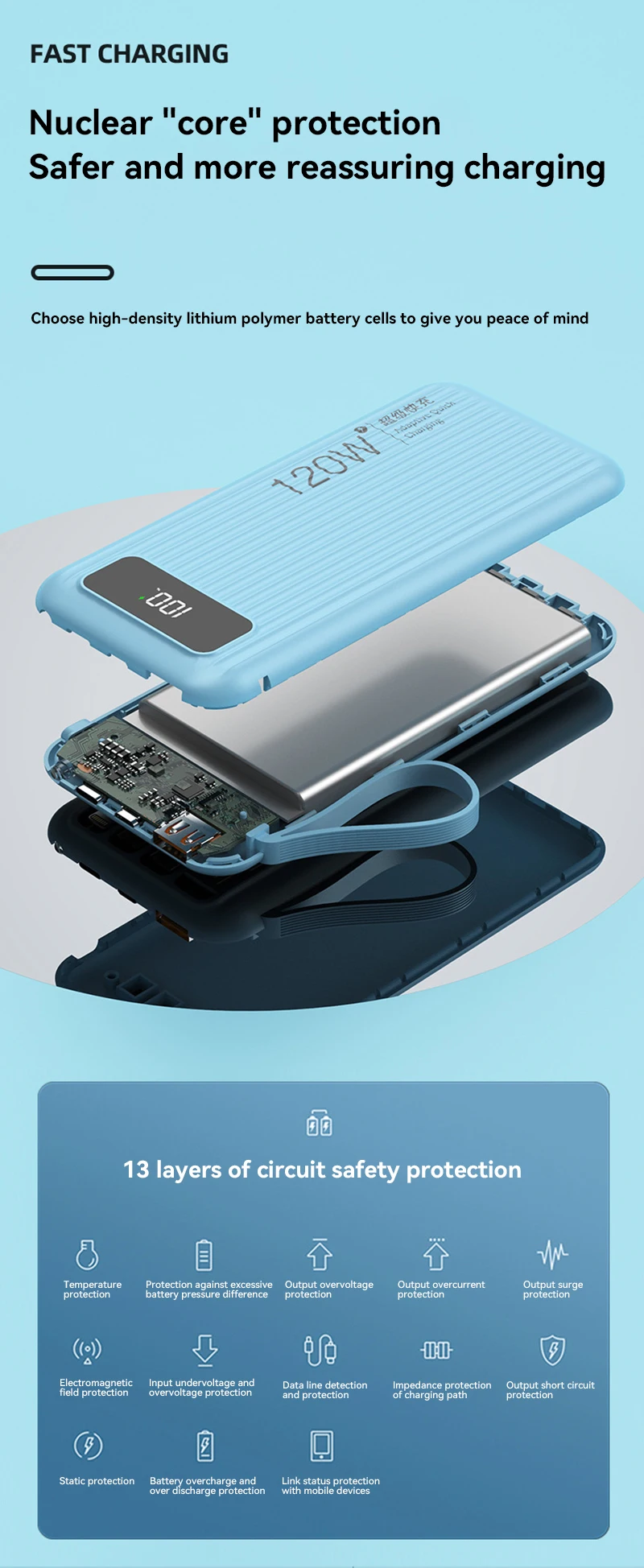 Xiaomi 120w Built-in Cable Super Fast Power Bank Capacity 20000mah Digital Display Portable External Battery For Iphone Huawei