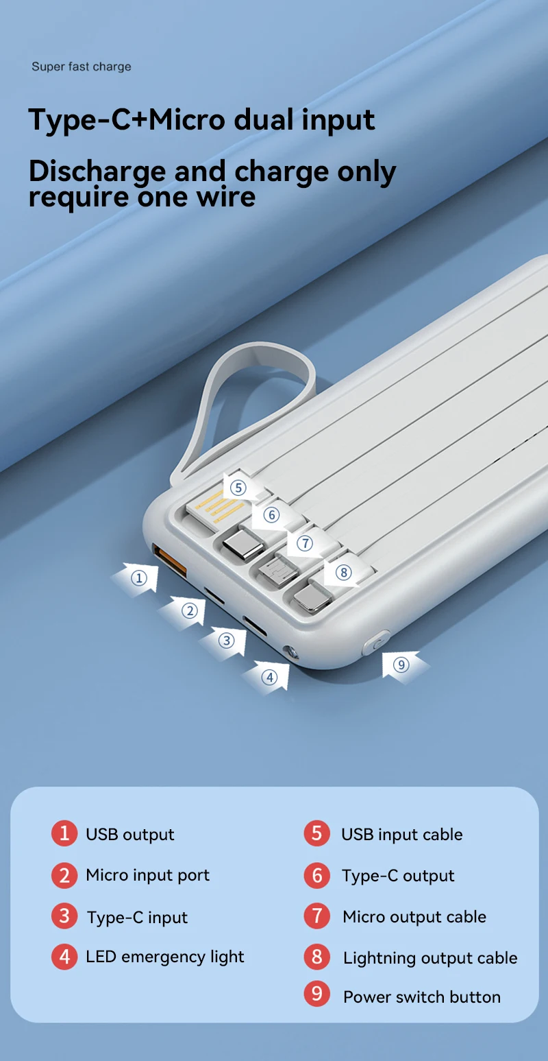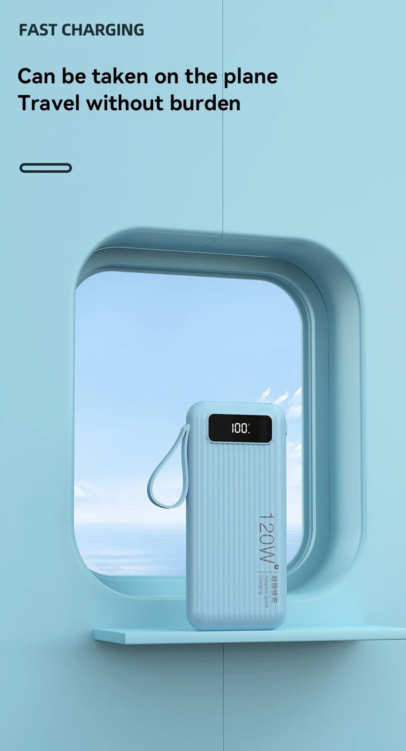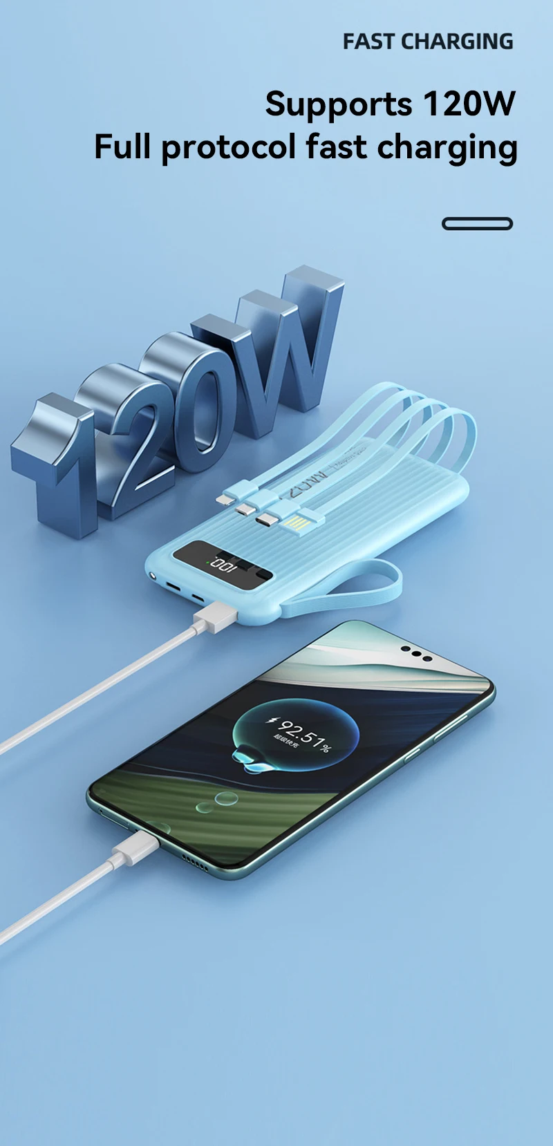 Xiaomi 120W Built-in Cable Super Fast Power Bank Capacity 20000mah Digital Display Portable External Battery For Iphone Huawei