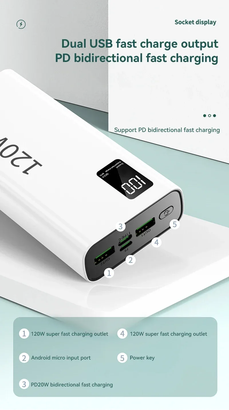 At a staggering 50000 mAh capacity, this power bank ensures that you never run out of juice, no matter how power-hungry your devices are. Whether you’re on a long journey, camping trip, or simply navigating a busy day, this power bank provides ample power to keep your devices charged multiple times over without the need for frequent recharges.