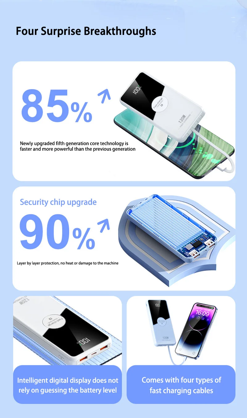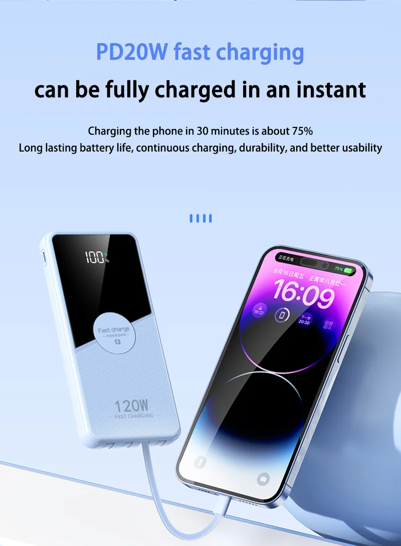 Support Quick Charge Technology: PD20W Two-way Quick Charge, 120W Super Fast Charging