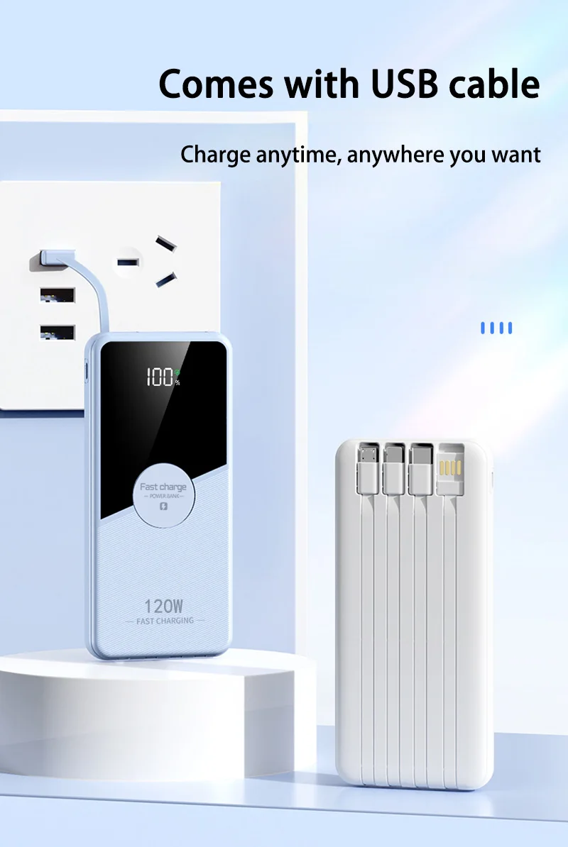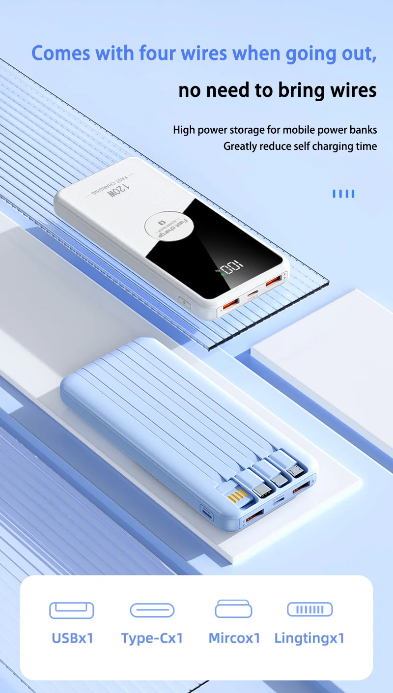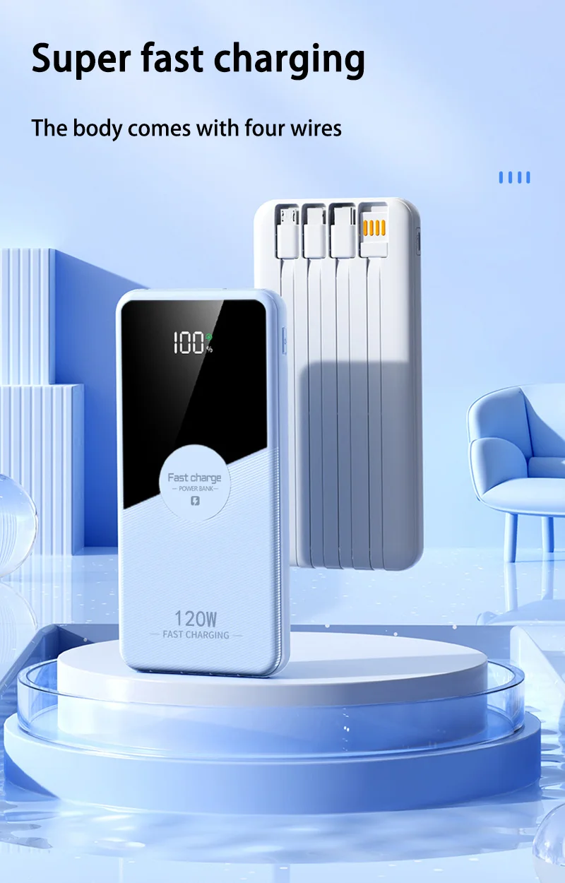 Xiaomi 200000mAh 120W Power Bank Fast Charging Powerbank Portable With 4 Wire Battery High Capacity Digital Display Power Bank