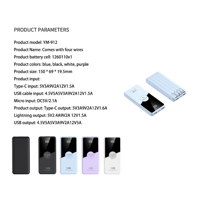 Features: Four Wire,Digital display, Large Capacity, Dual USB+Type-c