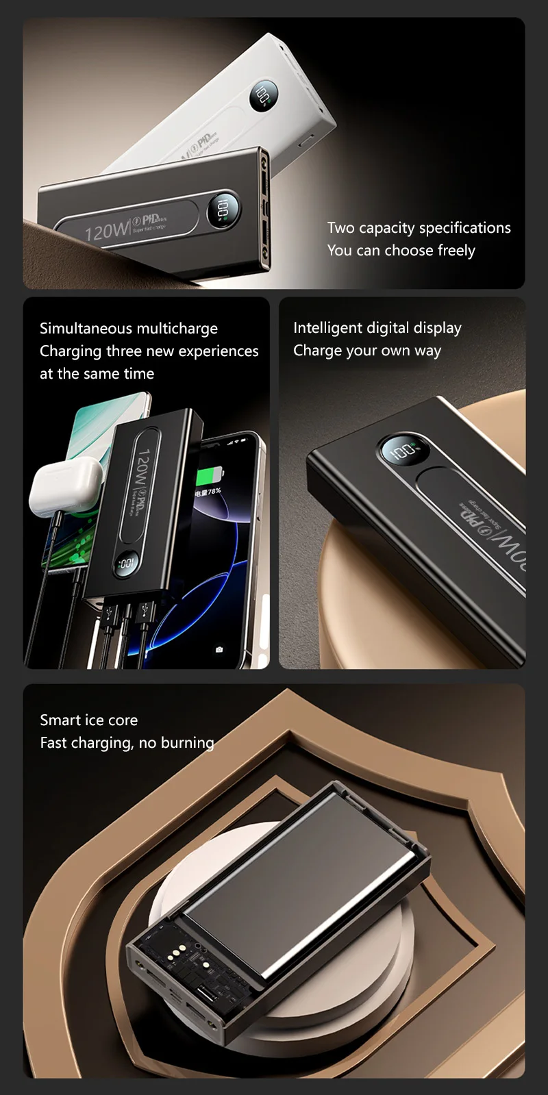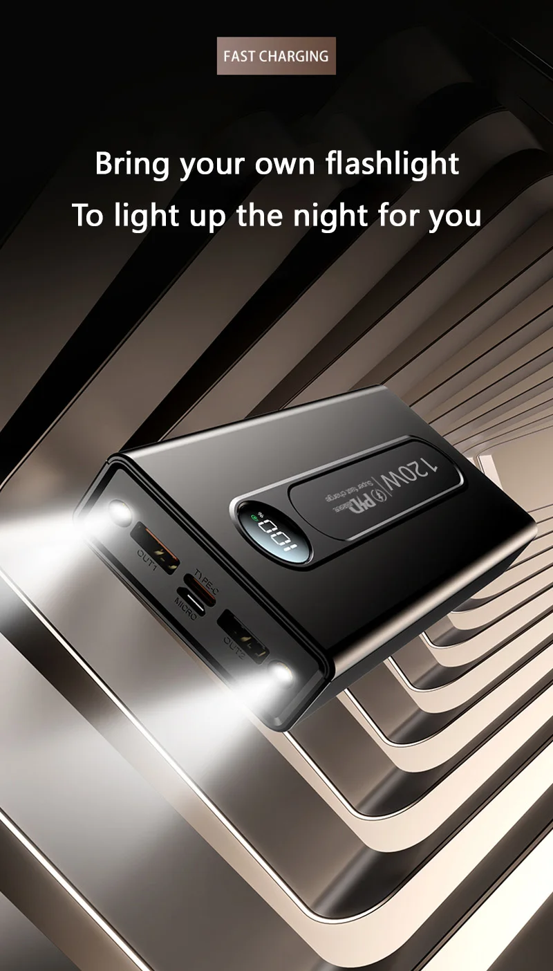 Despite its massive capacity, this power bank is surprisingly compact and lightweight, making it ideal for travel, outdoor adventures, or everyday use. Its sleek and ergonomic design fits comfortably in your hand or pocket, allowing you to carry it with ease wherever you go. Whether you're commuting to work, exploring the great outdoors, or simply relaxing at home, this power bank provides reliable backup power whenever you need it most.
