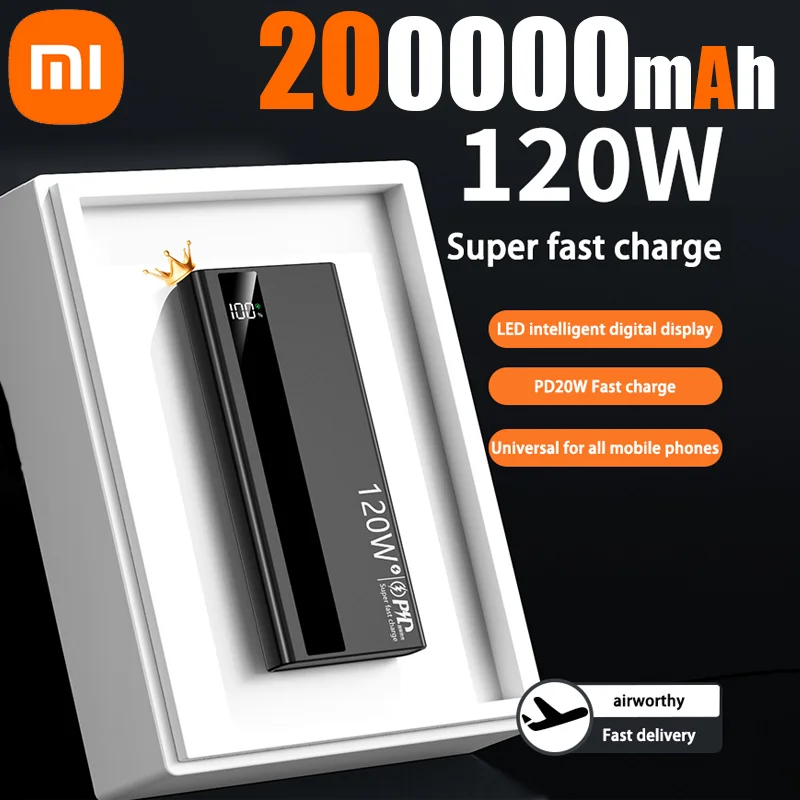 Xiaomi 200000mAH 120W Power Bank Super Fast Charging Battery High Capacity Digital Display Power Bank For iphone Samsung Xiaomi