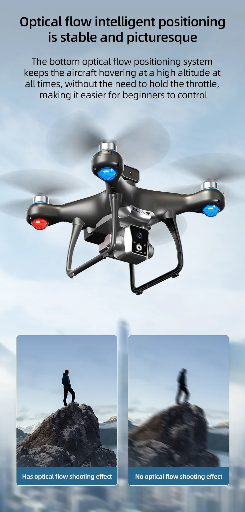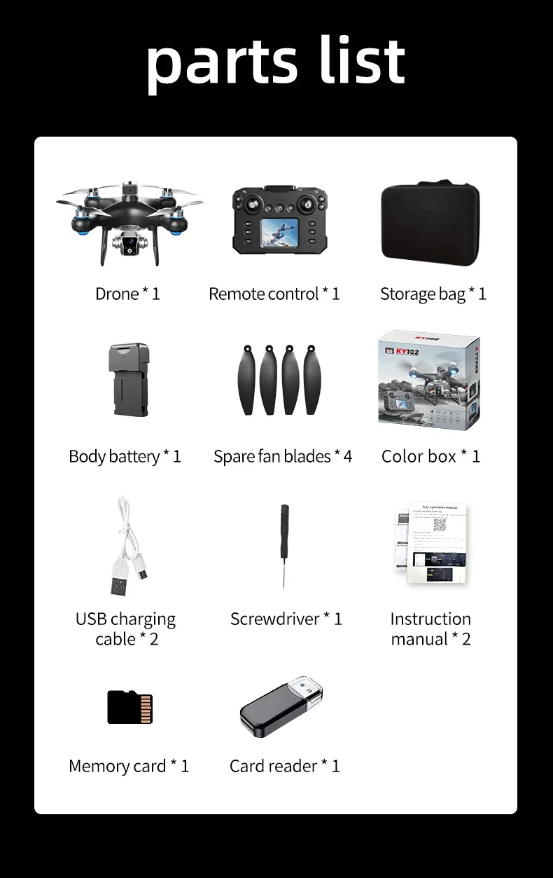 Three shots (front/vertical/above the head), four directions obstacle avoidance, optical flow positioning, electric lens, 8K high-definition pixel remote control, pneumatic loading, fixed height, high-definition image transmission
