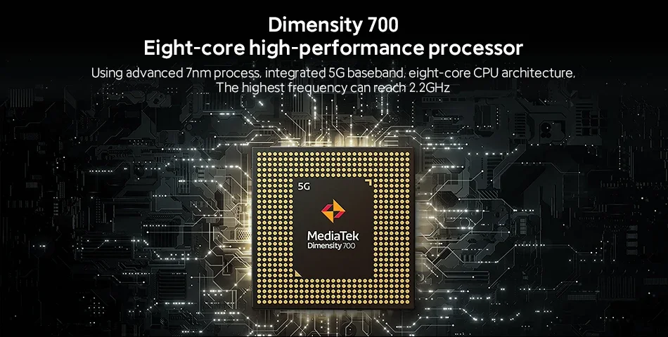CPU————- MTK Dimensity 700 Octa Core CPU, up to 2.2GHz