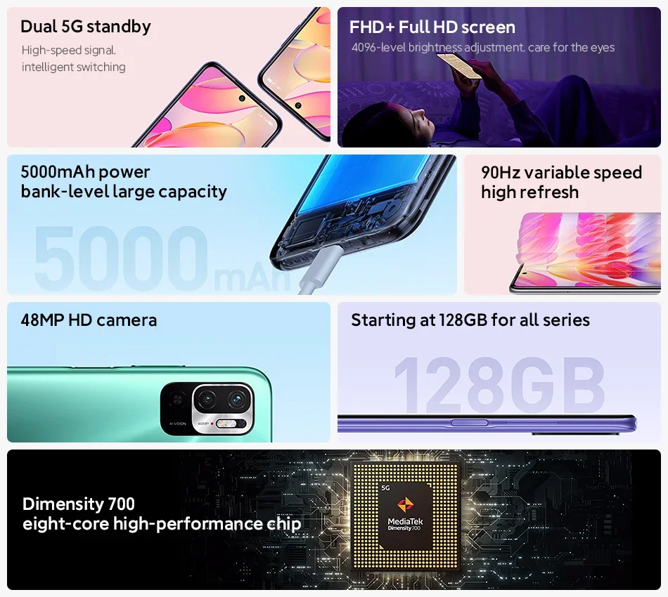 Xiaomi Redmi Note 10 128GB 256GB 7nm Dimensity 700 6.5 Inch Display 48MP Camera 5000mAh Mobile Phones Global ROM 5G Smartphone