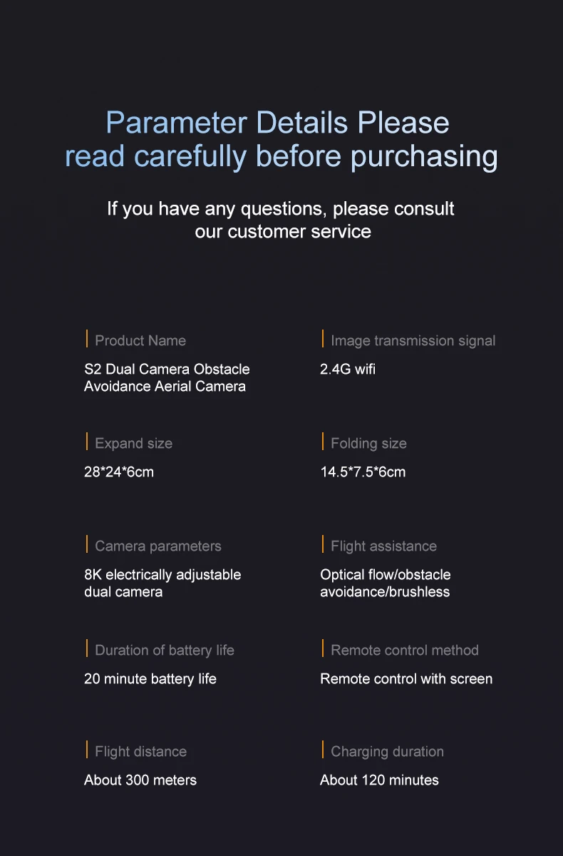 8. 5GHz anti-interference technology, six-axis gyroscope, more stable flight, more convenient control.