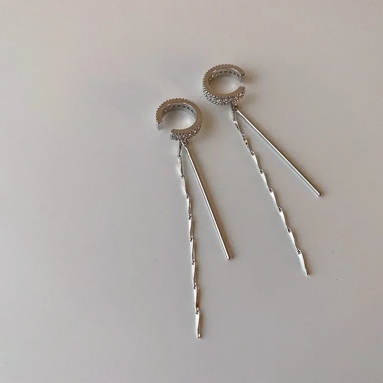 XINYI Shiny Crystal Tassel Non-Piercing Cuff Ear Clip Earring For Women Rhinestone Star Fake Cartilage Piercing Jewelry