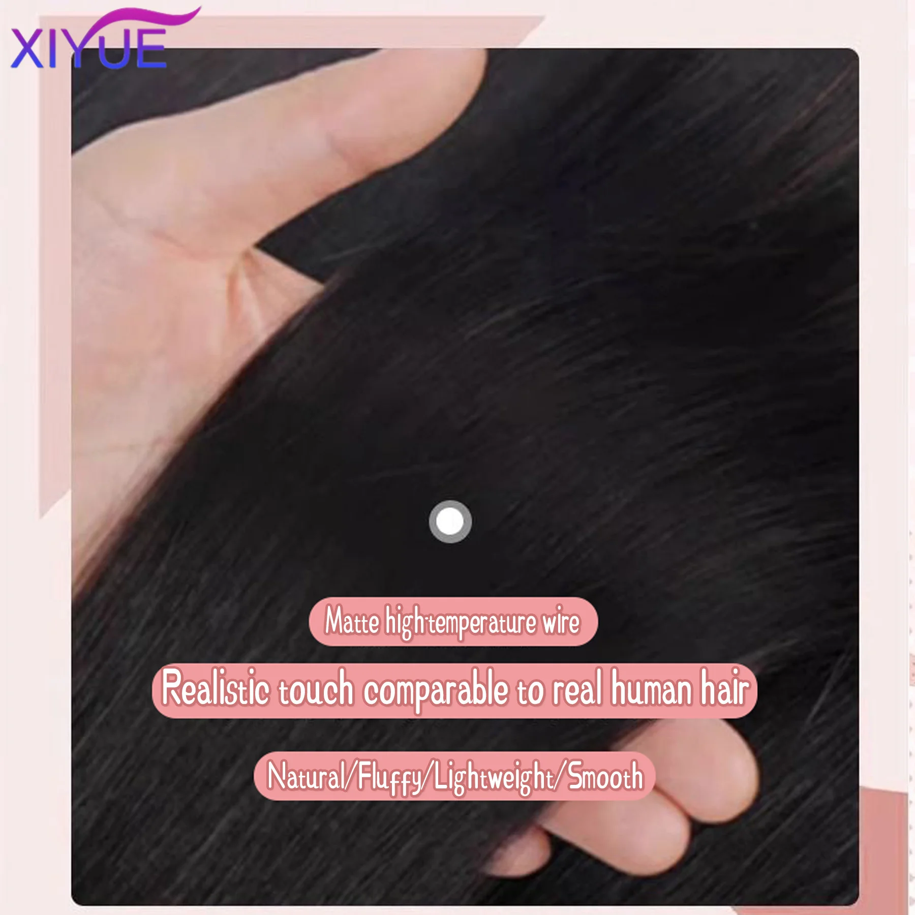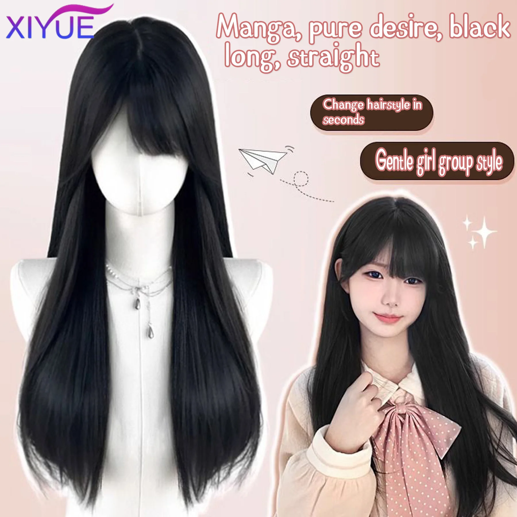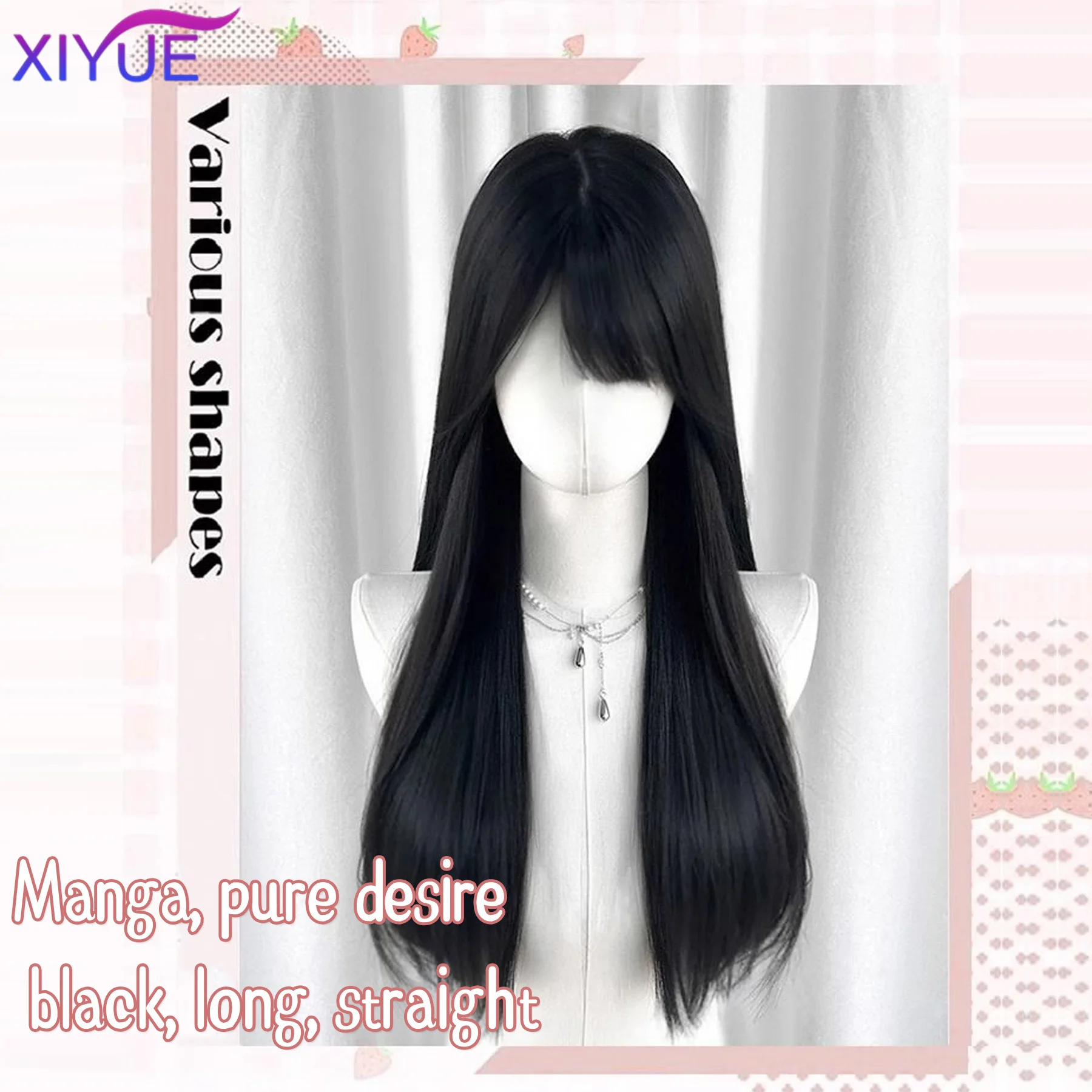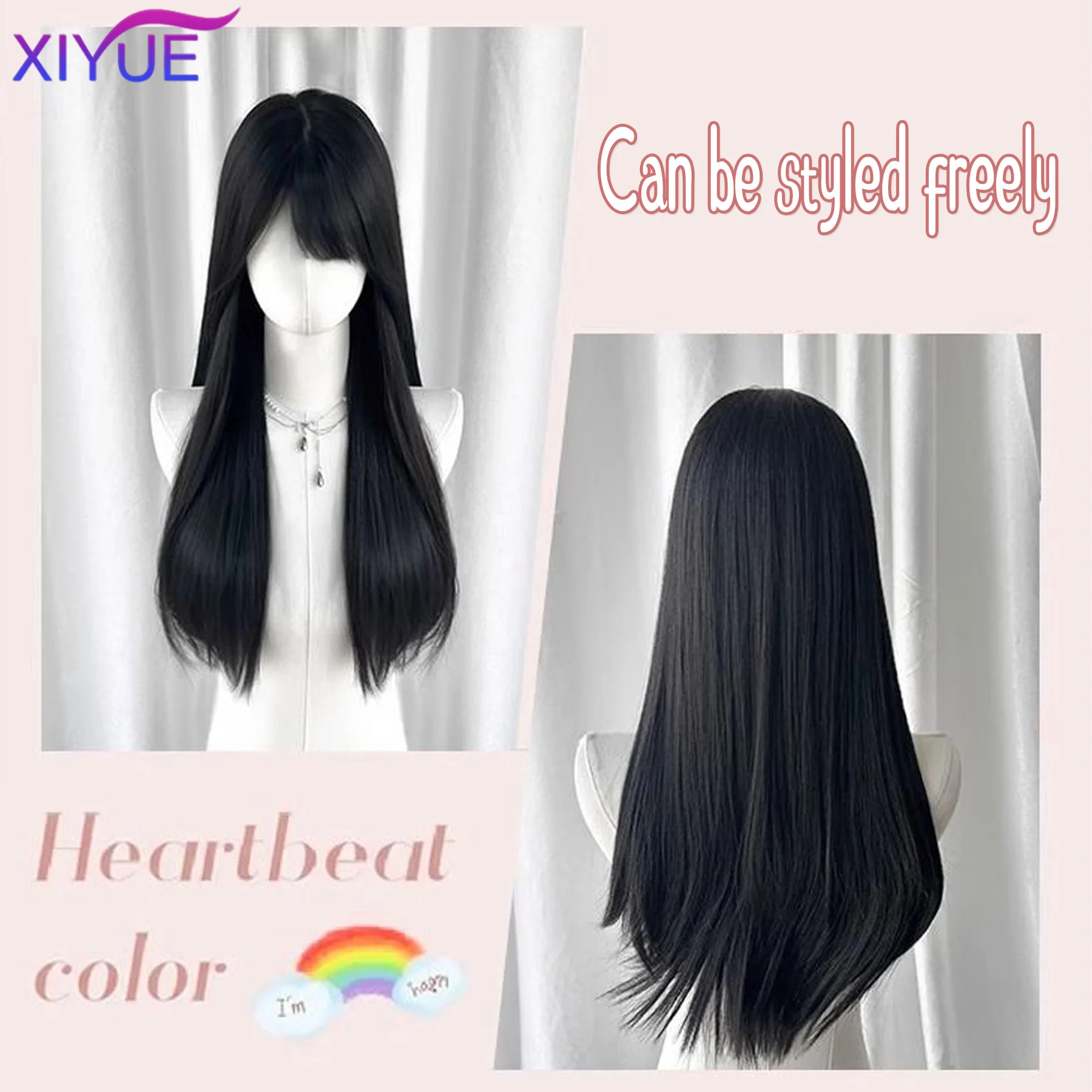XIYUE Long Silky Straight Synthetic Wigs with Bangs Black Cosplay Party Lolita Hair Wigs for Women Natural Heat Resistant Wig
