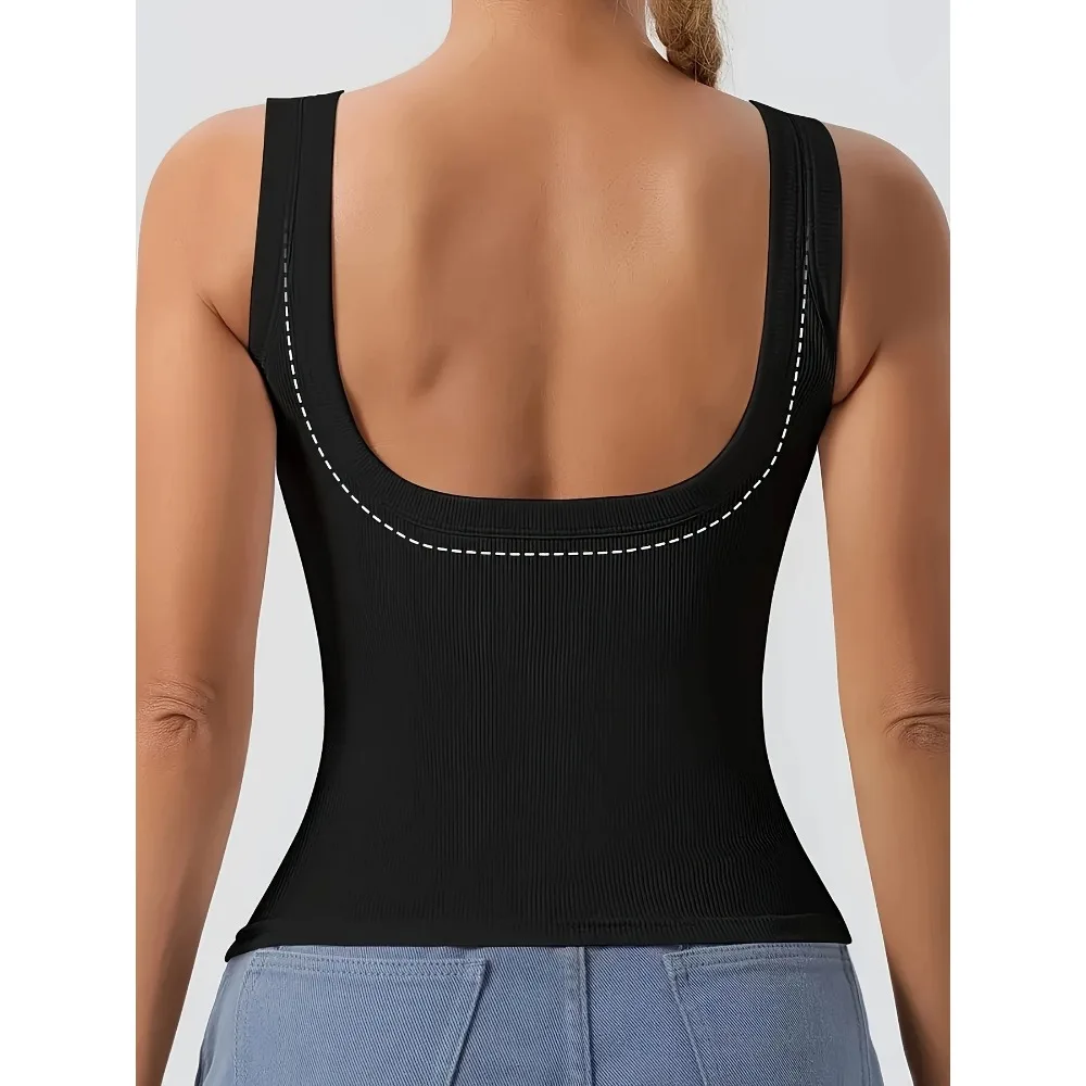 Plus Size 1XL-5XL Women's Fashion Deep V Neck Tank Top Sexy Solid Backless Pit Strip Fashion Sleeveless Slim Vest Tank Top