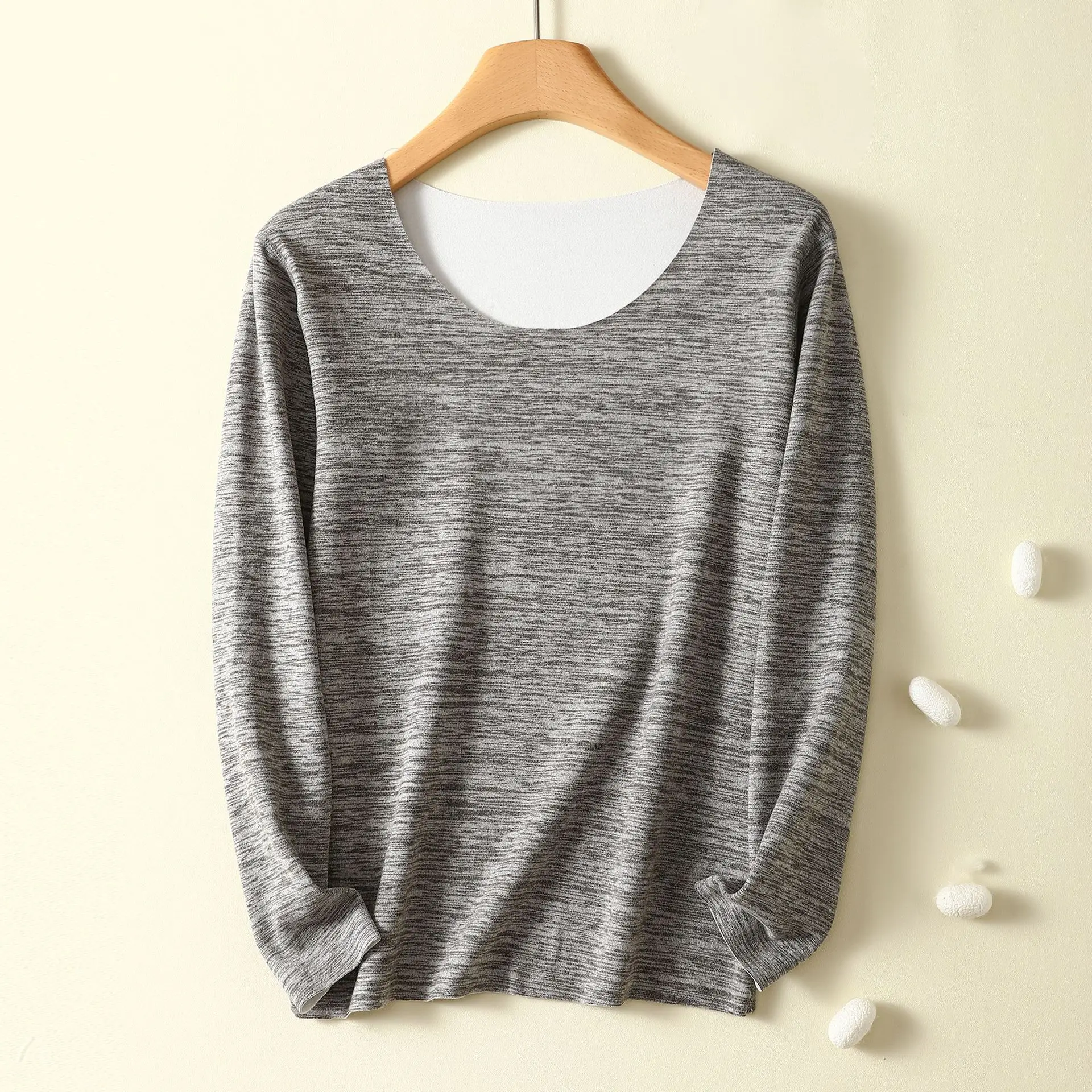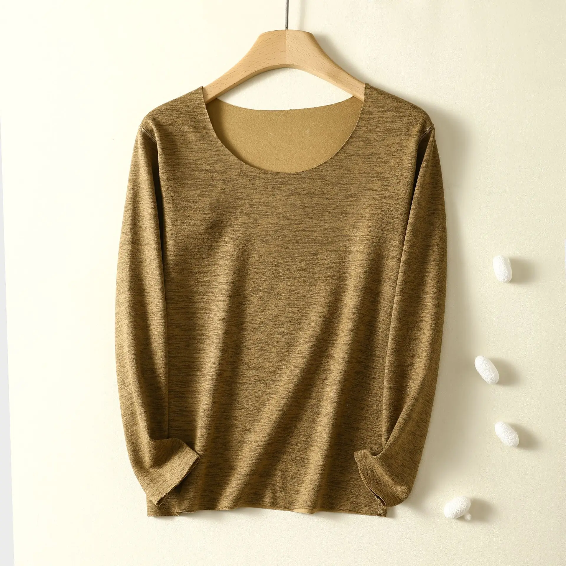 XL to 6XL Plus size Dralon warm Bottomed Tshirts Women O-Neck thick fleece T-shirt solid color Thermal tee tops base undershirts