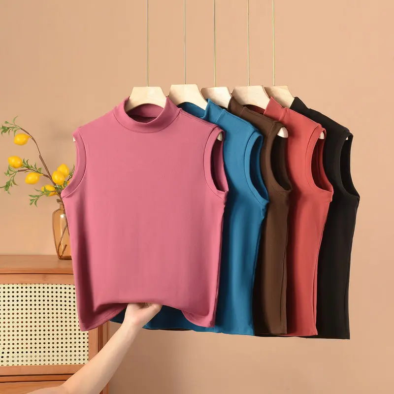 XL to 8XL Plus size Autumn winter warm Tank Tops Mock Neck sleeveless tops Women’s thick Vest Solid color bottoming undershirt