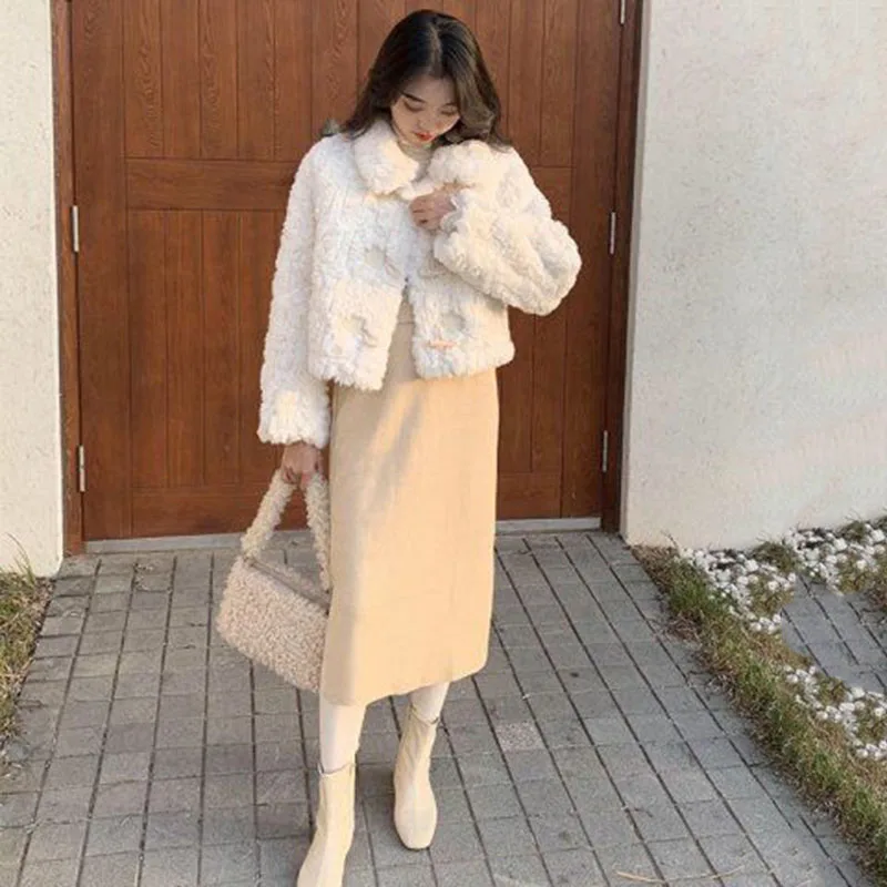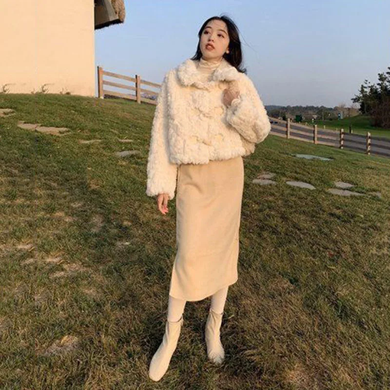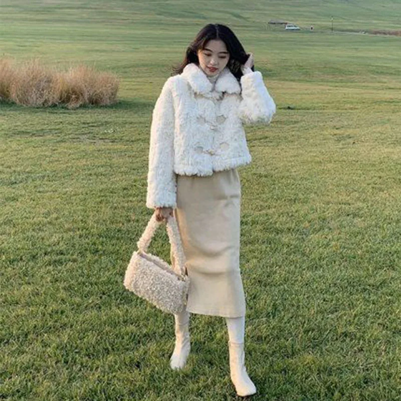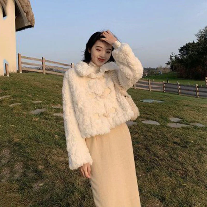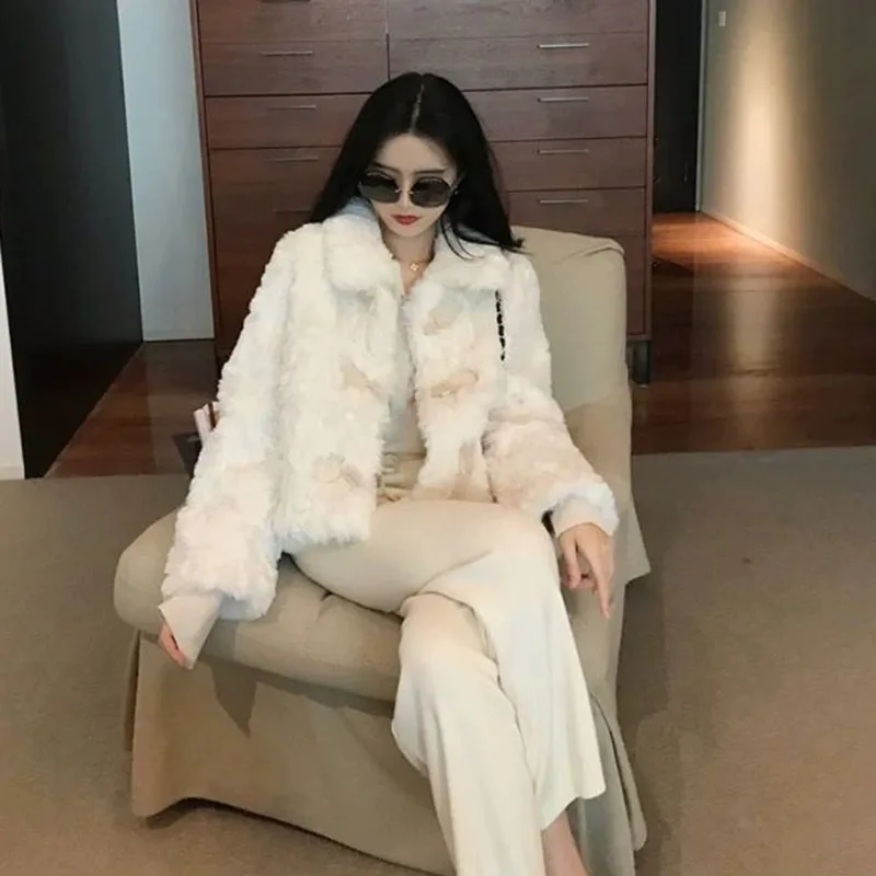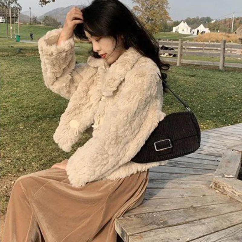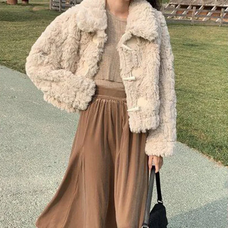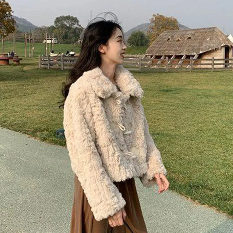 Xpqbb Korean Fashion Lamb Wool Jacket Women Autumn Winter Thicken Warm Short Faux Fur Coat Ladies Chic Horn Button Plush Outwear