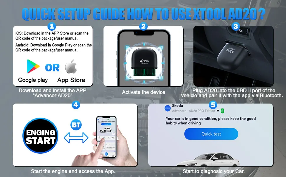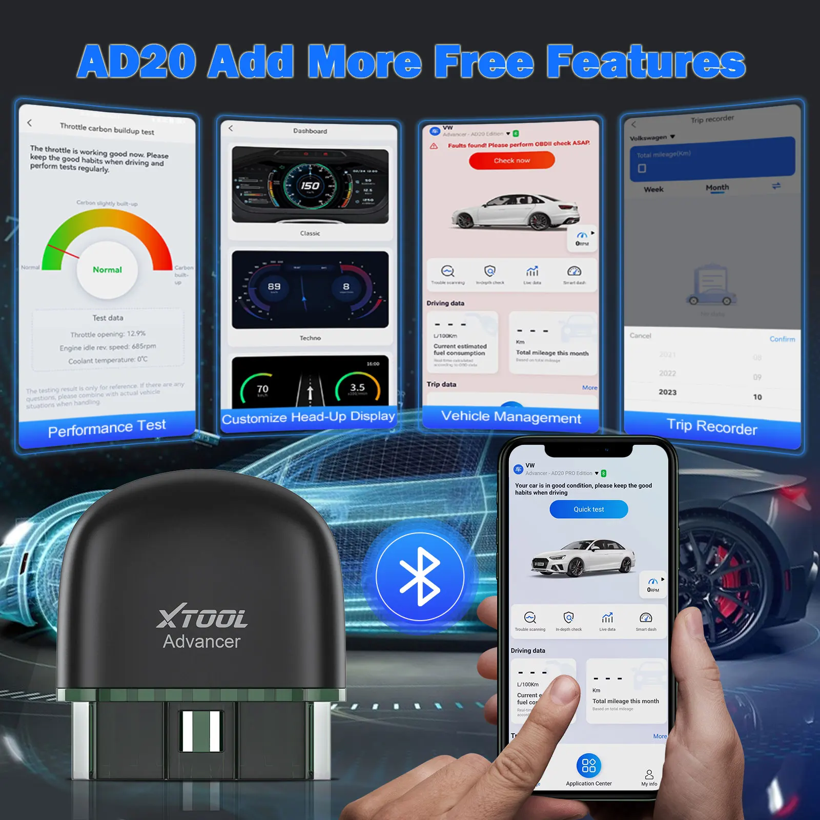 AD20 covers all OBD2 functions of ELM327 Bluetooth and AD10, but also adds engine diagnosis and other extended functions!