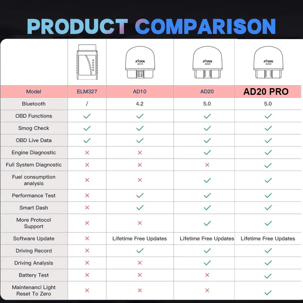 AD20 PRO>AD20>AD10>ELM327