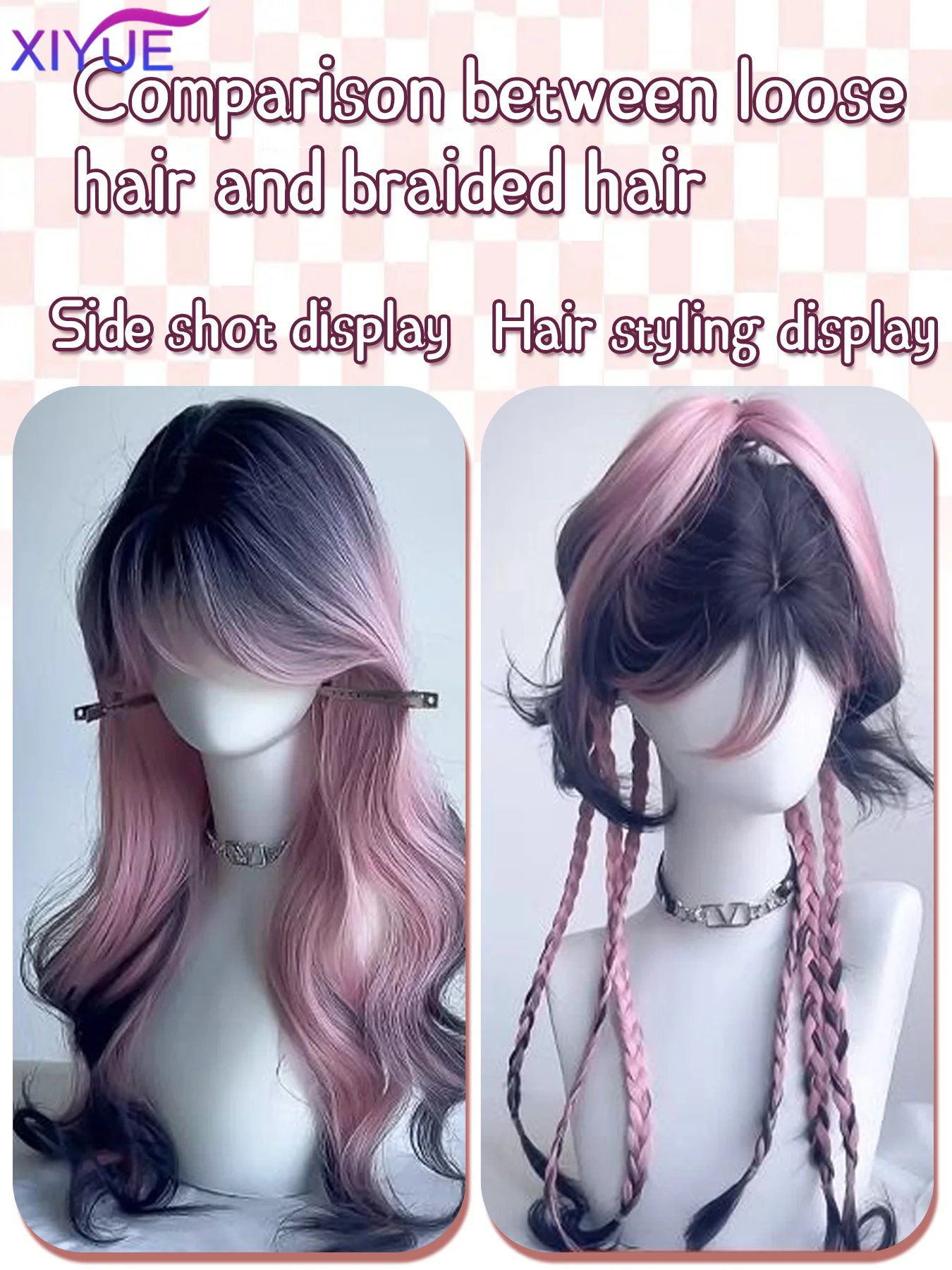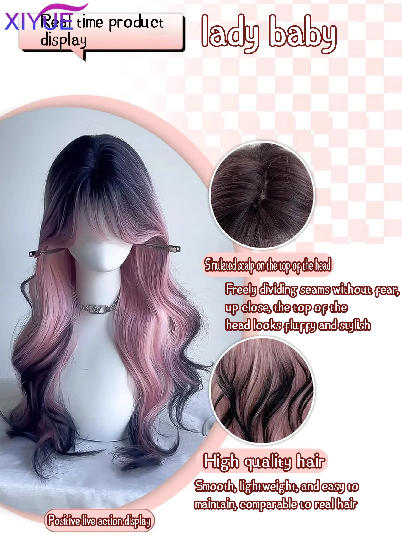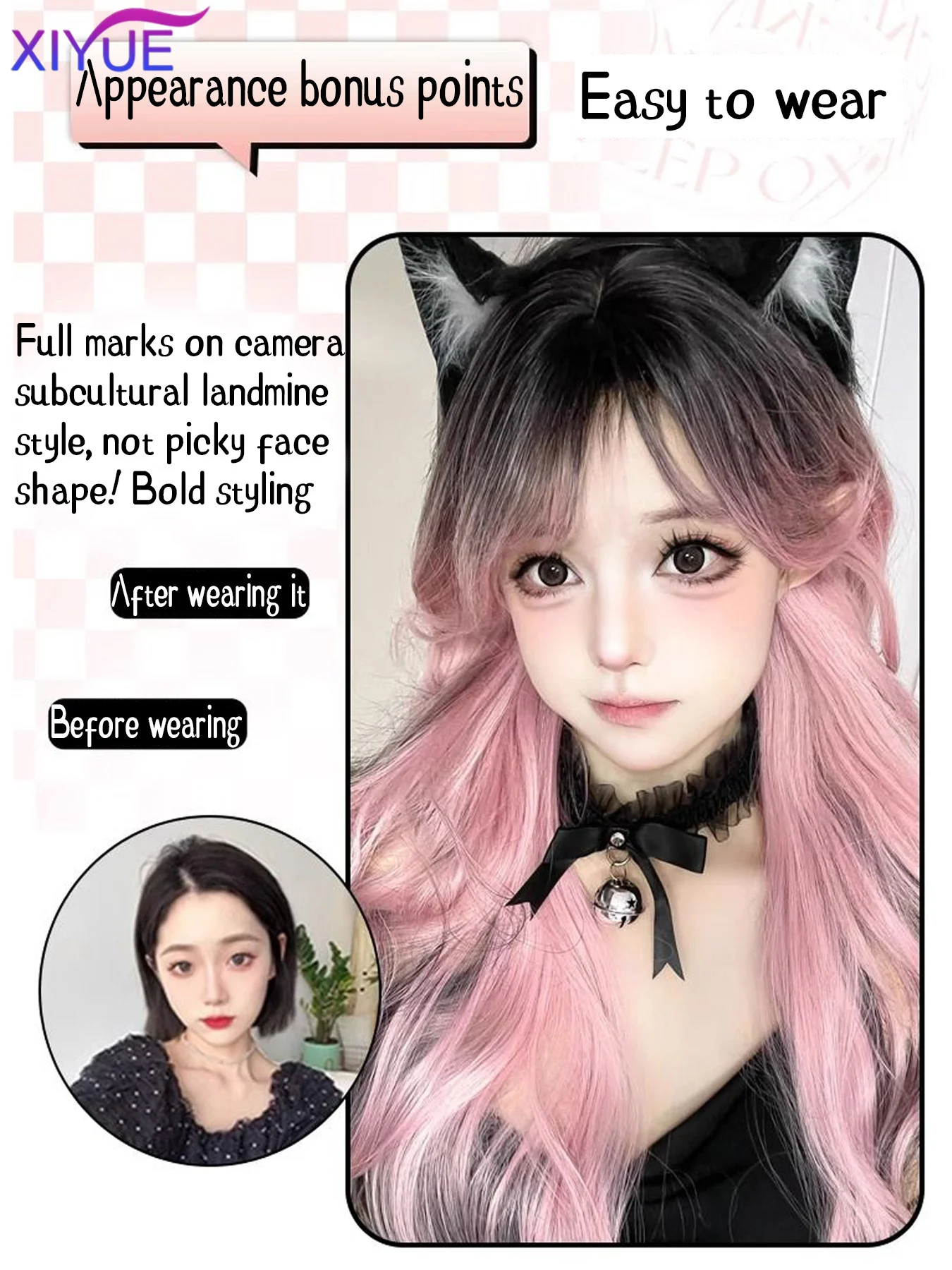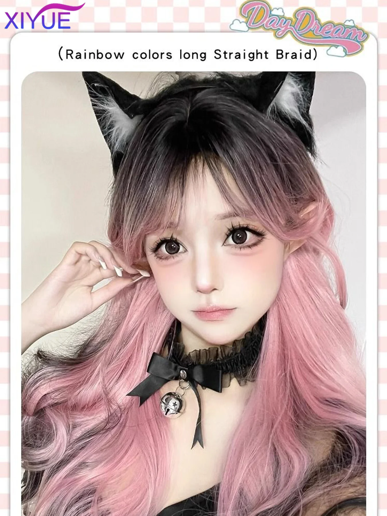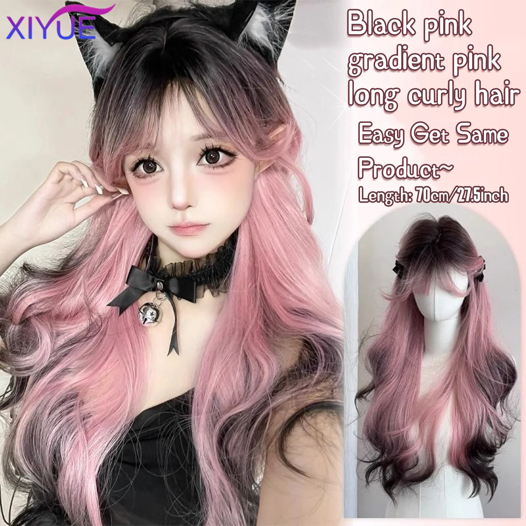 XY Synthetic Long Body Wave Black Pink Gradient Cosplay Wigs Heat Resistant Synthetic Wigs Bangs Natural Lolita Wigs For Women