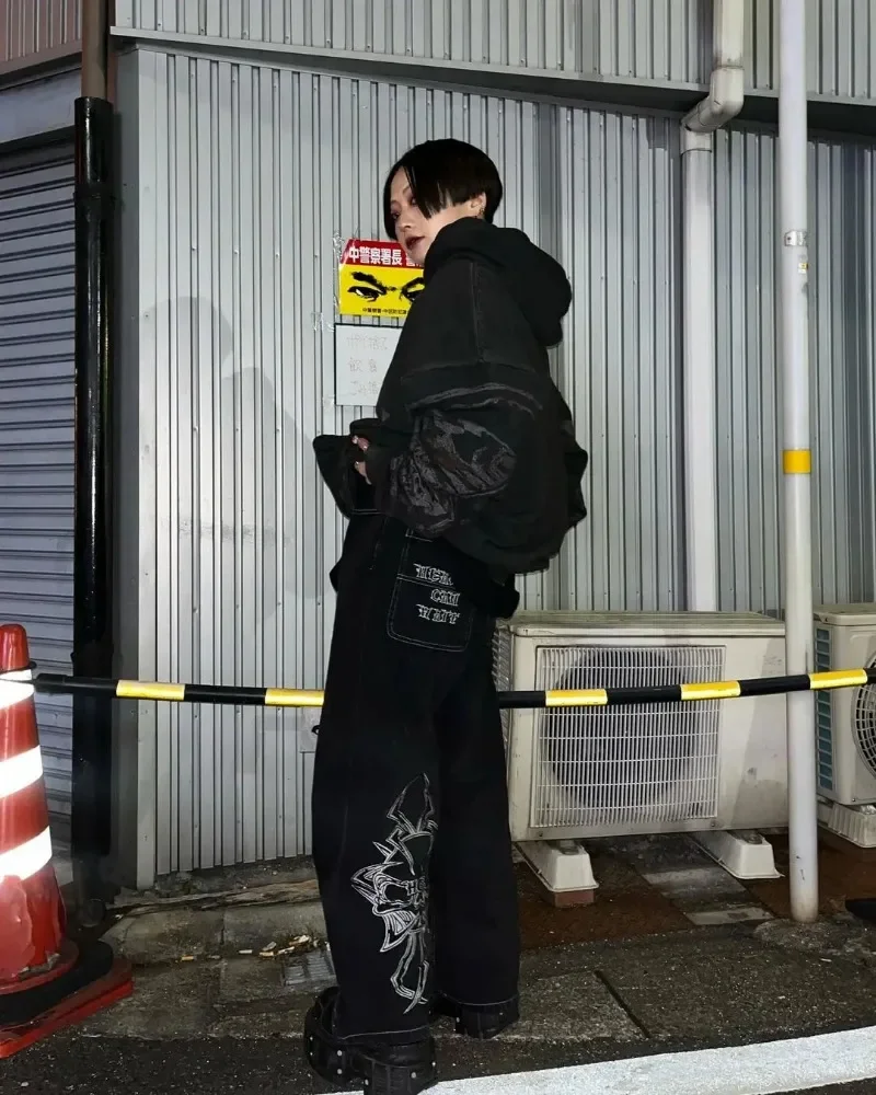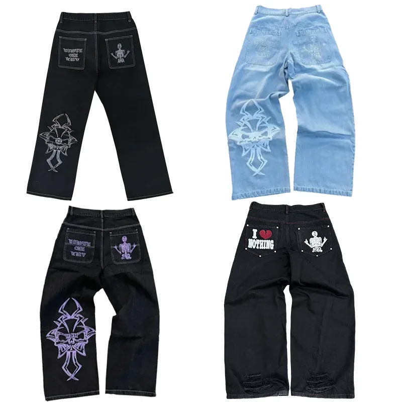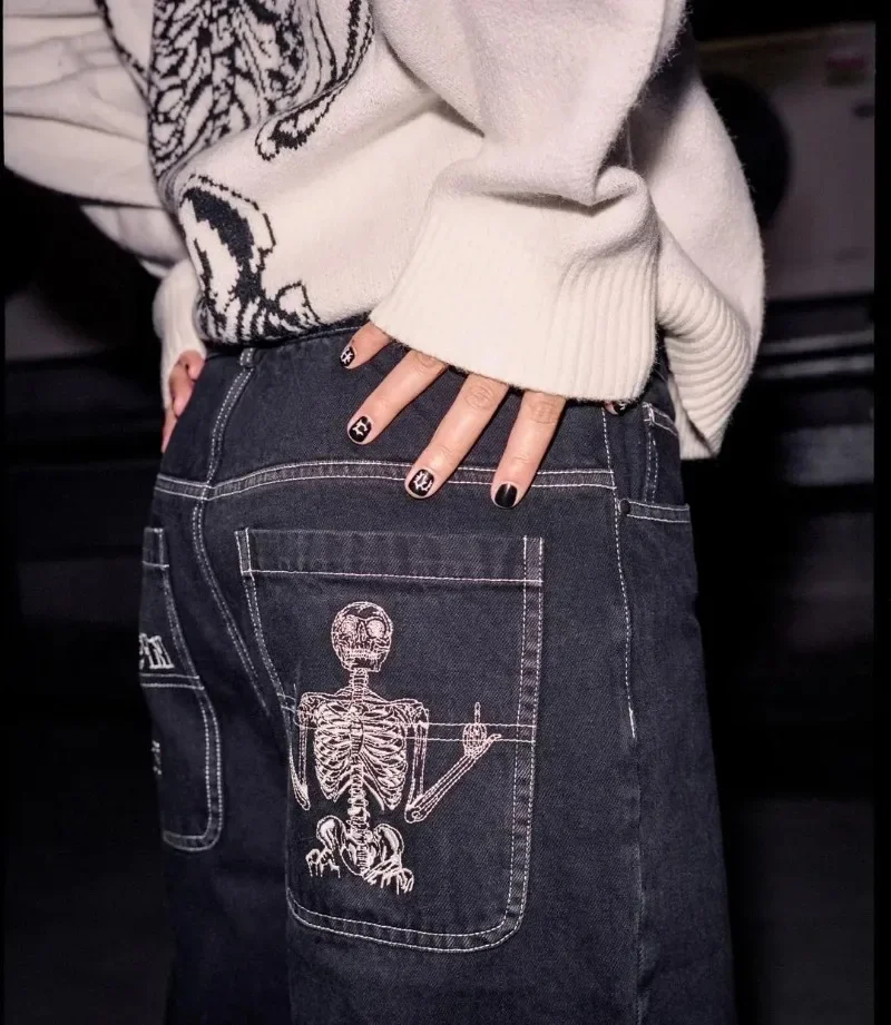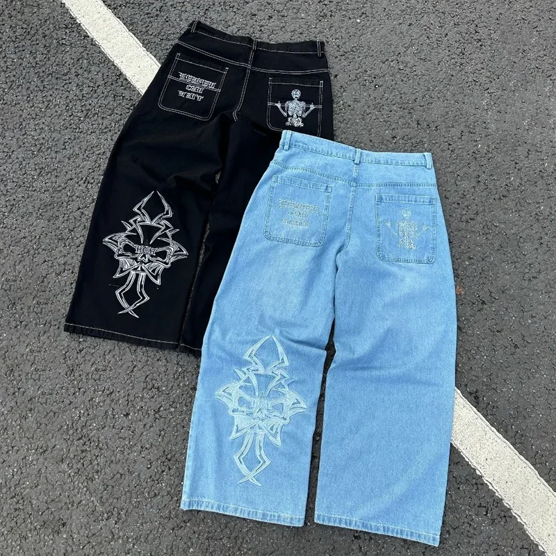 Y2K Baggy Jeans Harajuku Skeleton Embroidery high quality Sweatpants vintage men women Hip Hop streetwear Casual wide leg Pants
