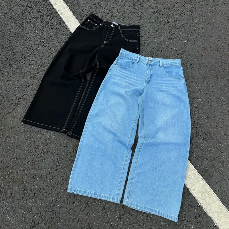 Men's Baggy Straight Leg Wide Leg Denim Pants Trend Concise Style Streetwear Trousers Daily Lace Up Design Hot Sale Jeans Male
