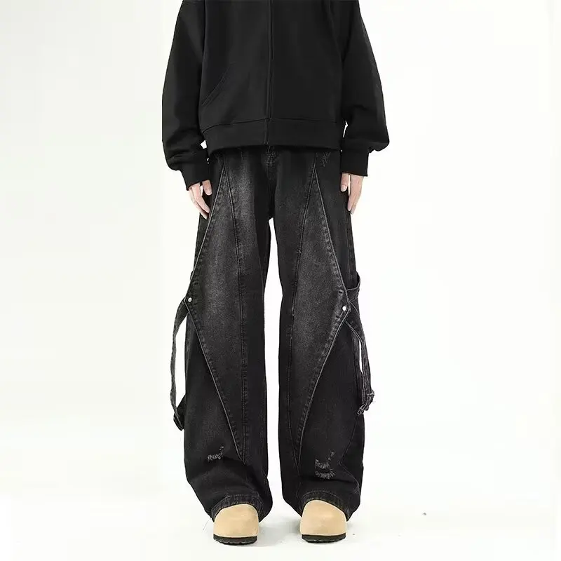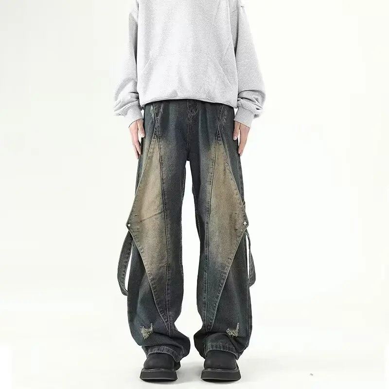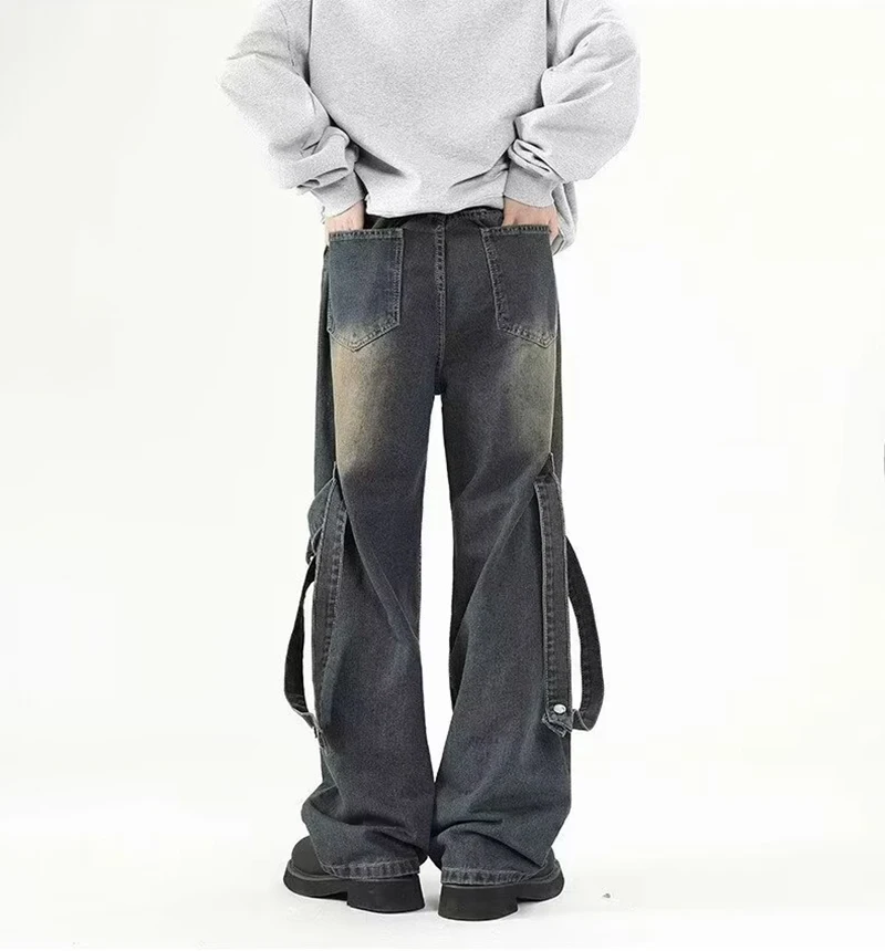 Y2K Baggy Jeans Men Retro American Fashion Trend Hip Hop Wide Leg Punk Street Embroidered Jeans Big Pocket Denim Pants