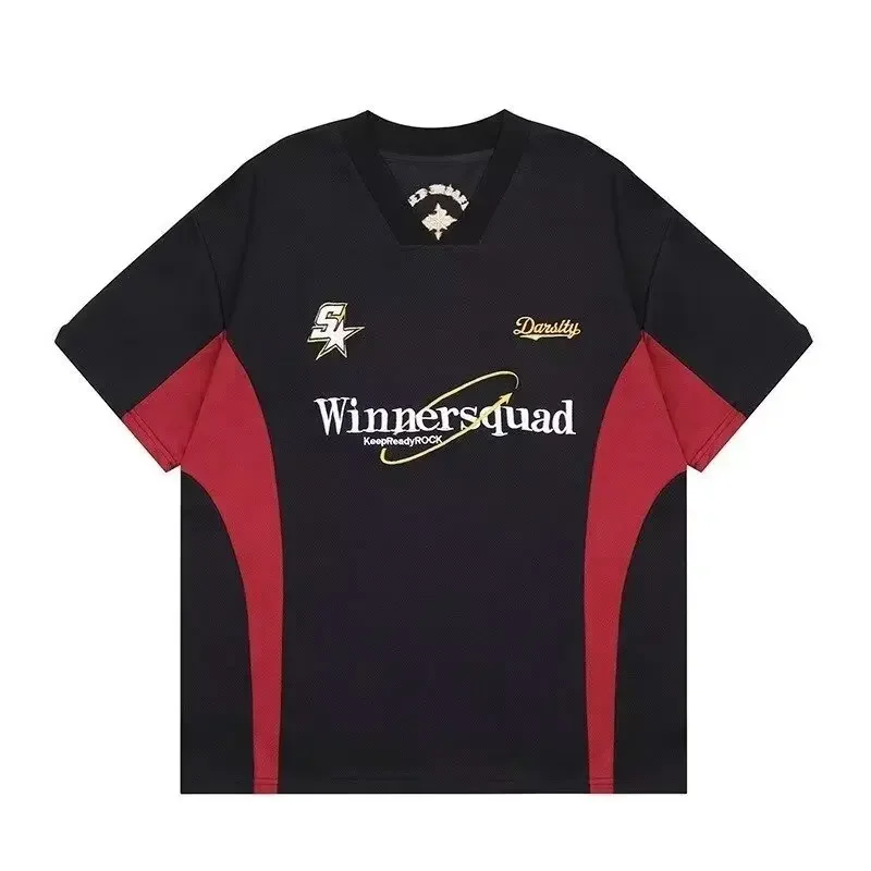 Y2K Basketball T Shirts Women Sporty Short Sleeve Tees Hip Hop Embroidery V-neck Tops Plus Size Streetwear Summer Clothes 2024