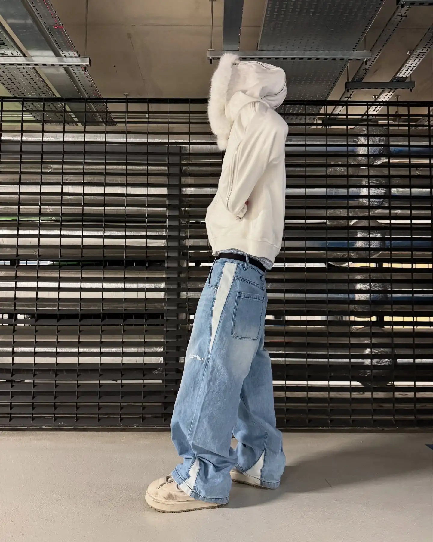 2024 New Korean Fashion Men's Baggy Jeans Classic Drawstring Straight Denim Wide-leg Pants Casual Y2K Vintage Jean Trousers