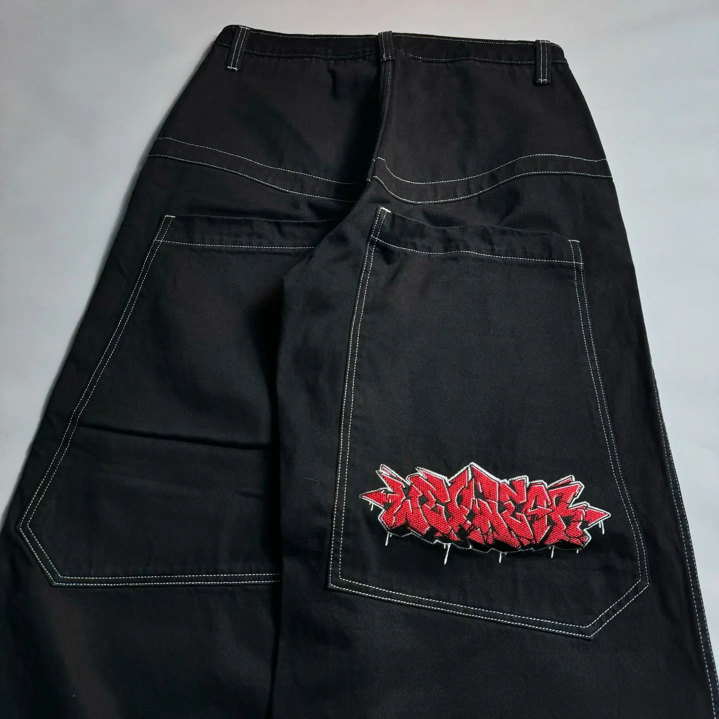 Y2K Hip Hop Wide Leg Baggy Jeans Wexwear Punk Street Dance Big Boy High Waist Jeans Black Big Pocket Pants Men Women Clothing