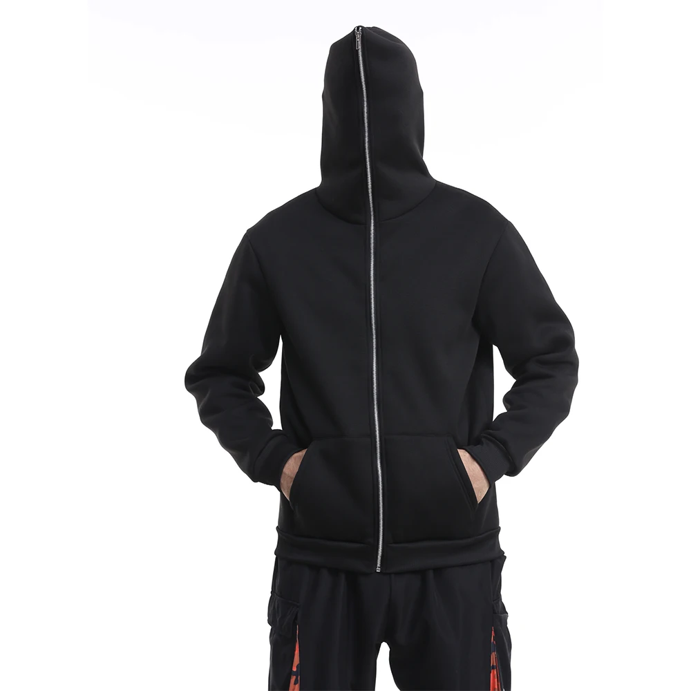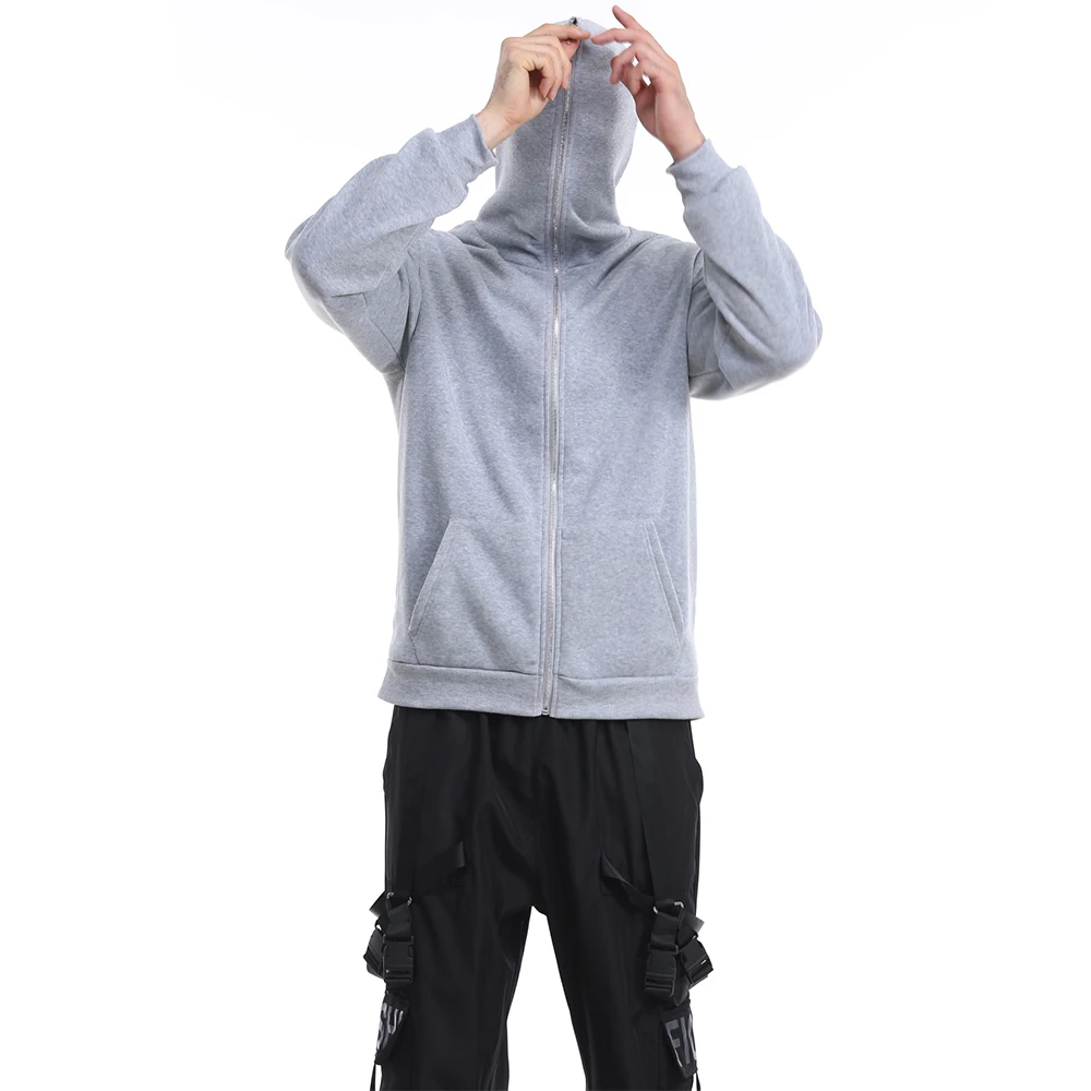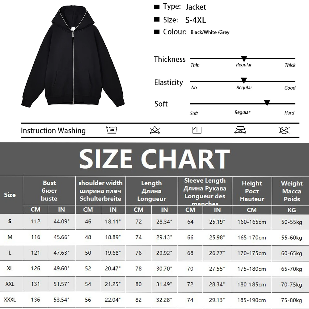 Y2K Men Hoodies Harajuku Hip Hop Full Zipper Jacket Coat Streetwear Punk Loose Pocket Hooded Sweatshirt