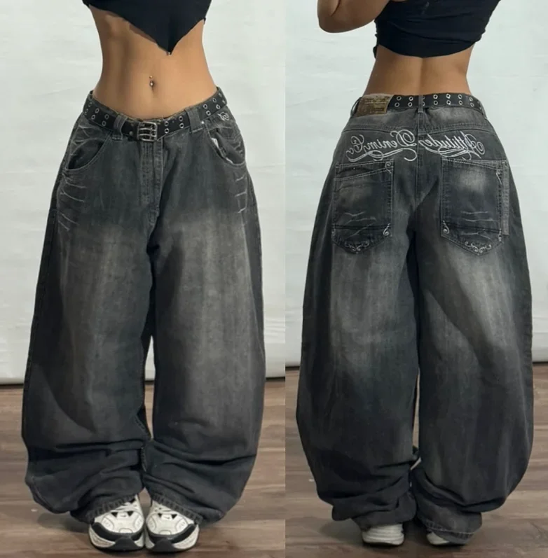 Y2K Streetwear Vintage Hip Hop Pop Letters Embroidered Baggy Jeans Women Harajuku Rock Casual Joker Couple High Waist Jeans
