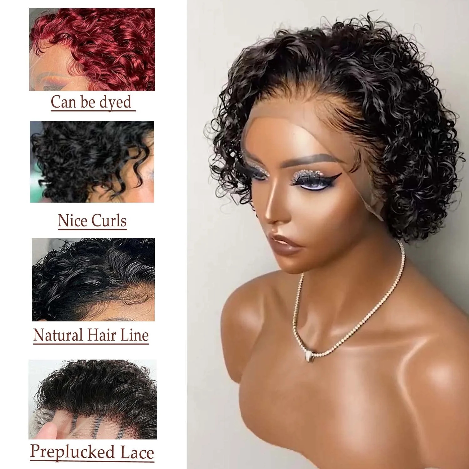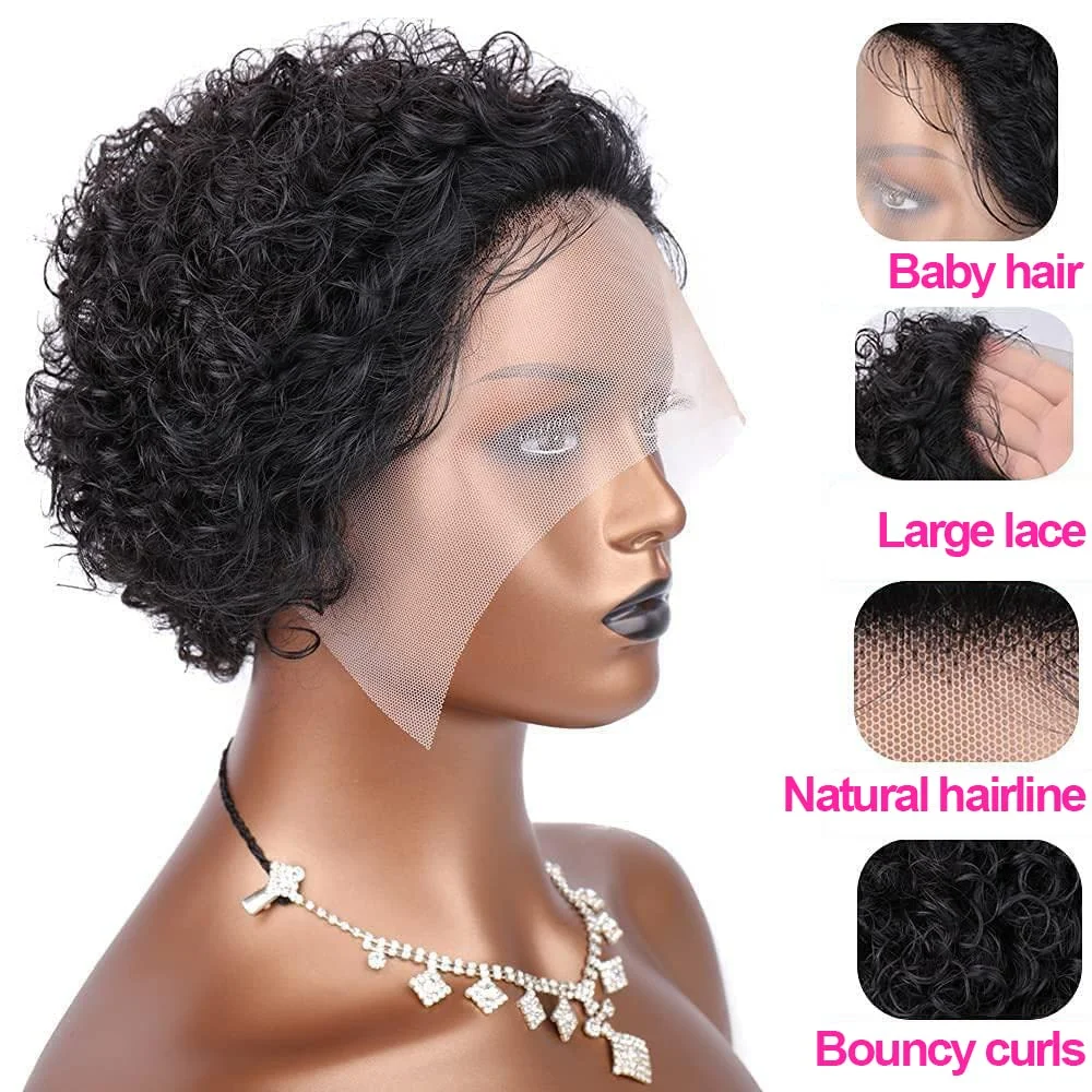 Yesbleen 13×1 Lace Front Transparent Pixie Cut Wig 8Inch Curly Human Hair Wigs Cheap Short Bob Wig Deep Wave Lace Wig Preplucked