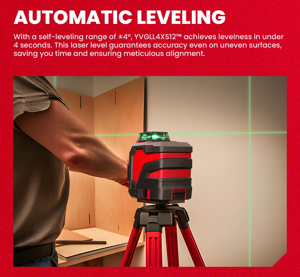 YEVOLT Laser Level Green 12-Line YVGLL4XS12 Series 3-Plane Self-leveling 360 3D Horizontal & Vertical Power x 2 Measuring Tools