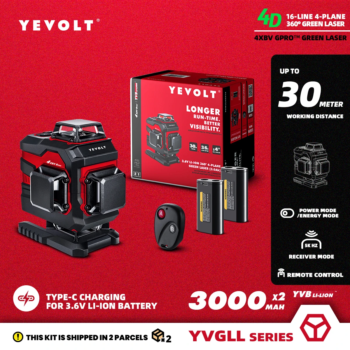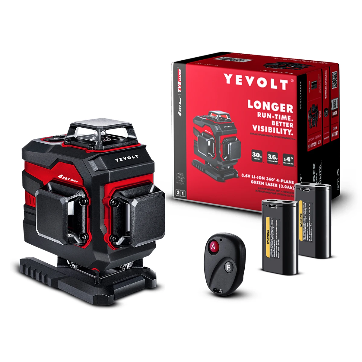 YEVOLT YVGLL4XS16DP Green Laser Level 4-Plane 16-Line Self-leveling 4D Horizontal & Vertical 2 x 3.6V 3Ah Power Measuring Tools