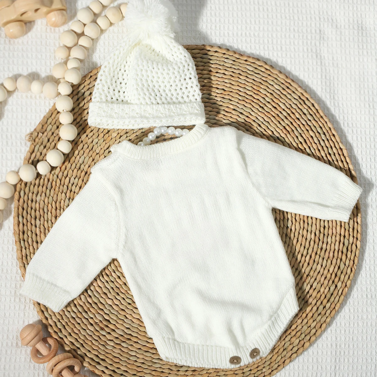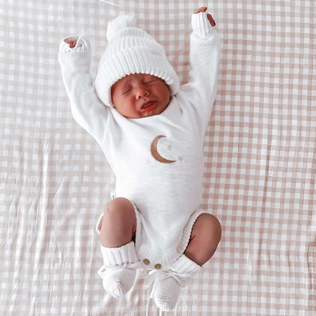Ylsteed Knitted Newborn Photography Outfits Embroidery Moon Star Romper with Pom Hat Baby Boy Girl Jumpsuit for Photo Shooting
