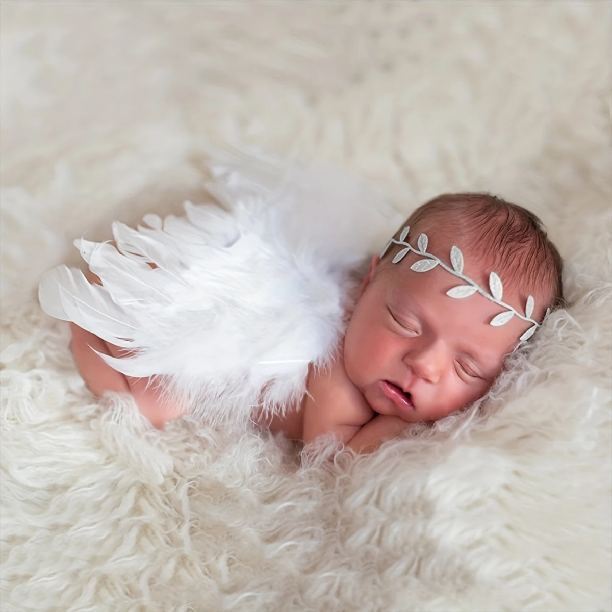 Ylsteed Newborn Angel Wings with Leaves Headband Baby Girl Boy Photoshoot Outfits Infant Photography Accessories Picture Props