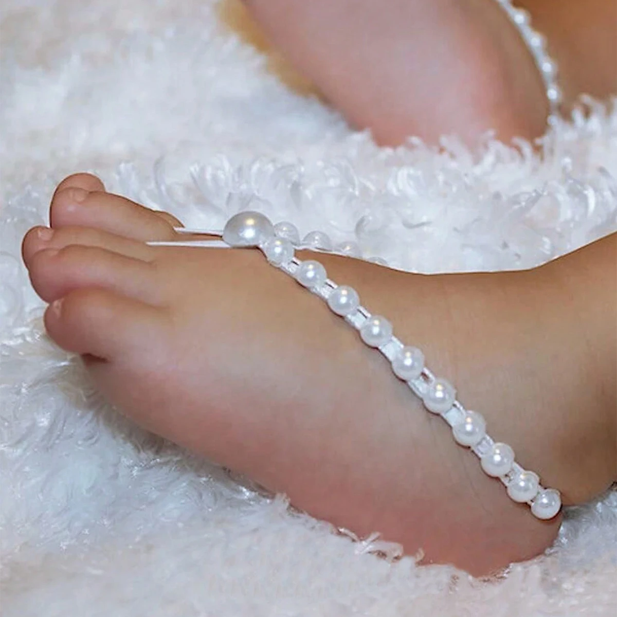 Ylsteed Newborn Girl Pearl Barefoot Sandals Infant Photography Accessories Baby Girl's Photography Props Foot Shoes